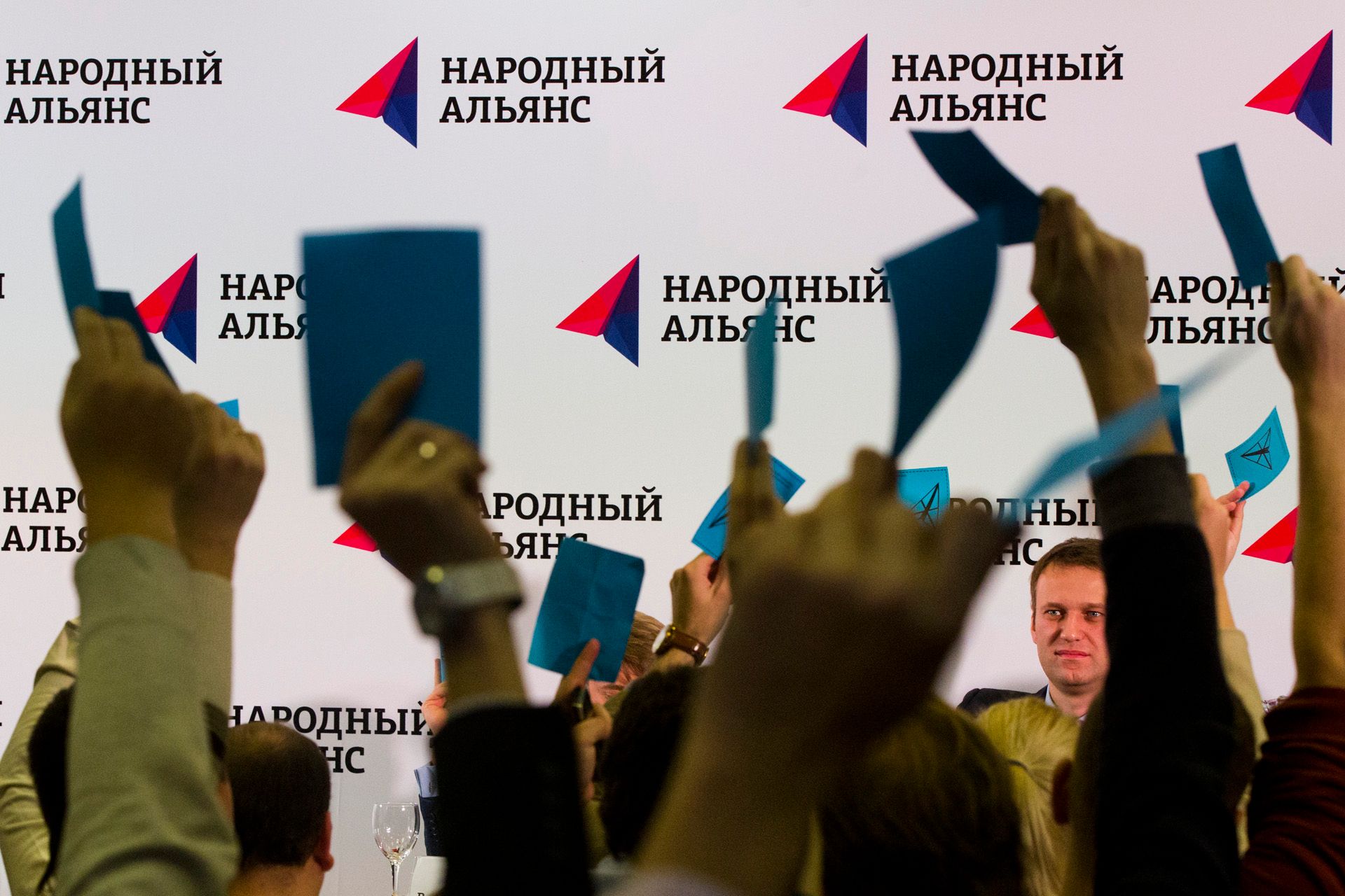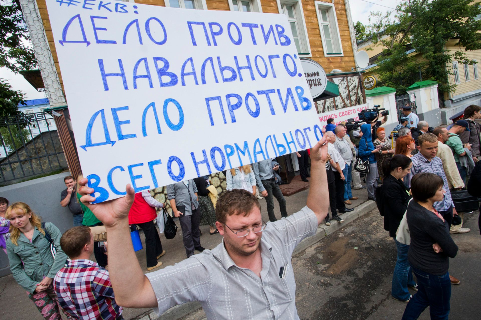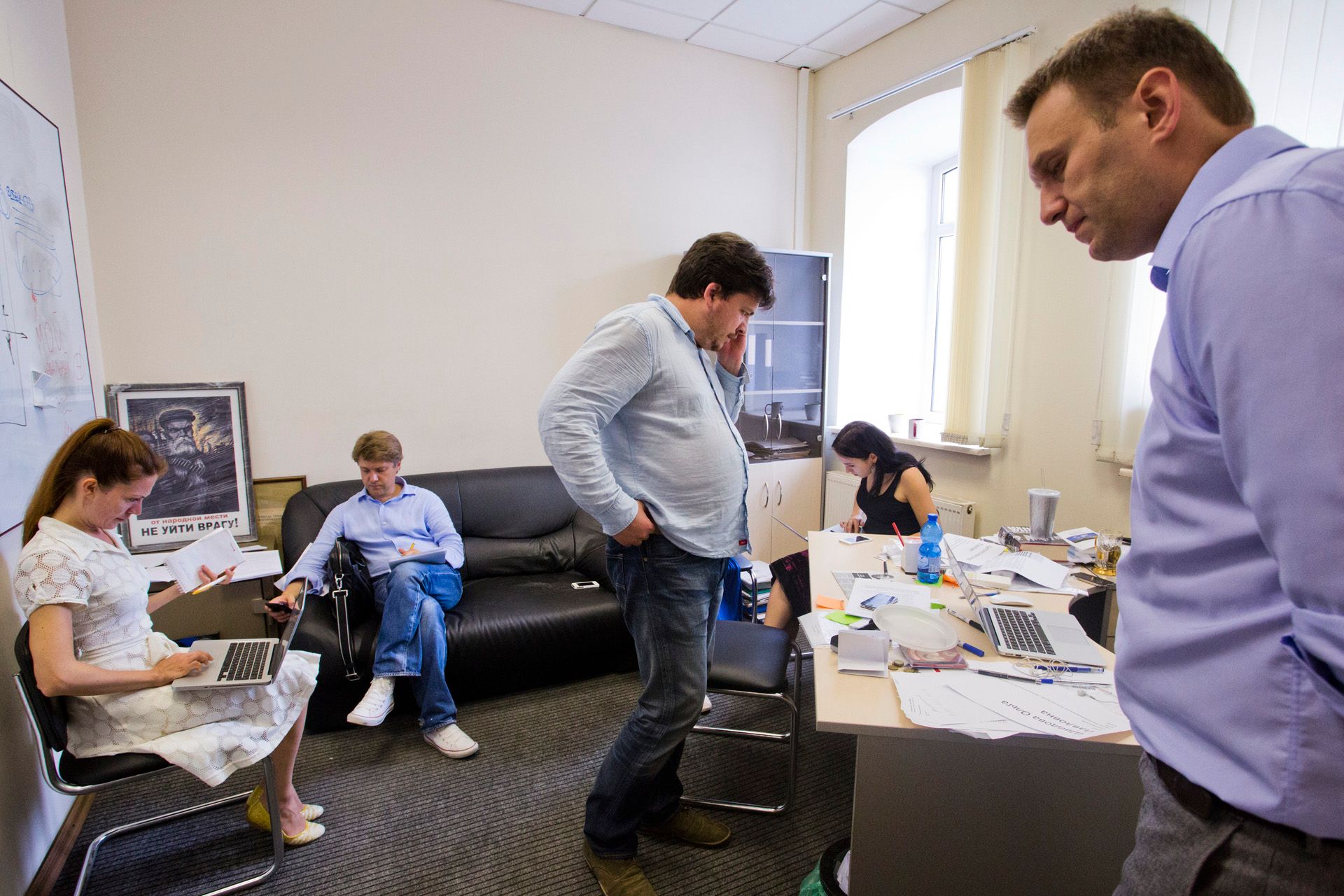 Евгений Фельдман 20 января. Четвертое заседание Координационного совета оппозиции. Справа — националист Владимир Тор, слева — Илья Яшин, Максим Кац, Любовь Соболь, Алексей Навальный. Оппозиционеры с трудом смогли собрать кворум для проведения заседания. Большинством голосов они проголосовали за проведение весной «Марша против палачей», а также призвали участников протестов 2012 года выступить свидетелями на заседаниях по «болотному делу».20 февраля. Депутат Госдумы Владимир Пехтин с парламентской трибуны объявляет о сложении депутатских полномочий. Это произошло после расследования ФБК о его незадекларированной квартире в Майами. Пехтин сначала заявлял, что заграничной недвижимости у него «практически нет», но всего через неделю был вынужден уйти из парламента.1 марта. Алексей Навальный в коридоре Басманного суда Москвы в перерыве между заседаниями. В тот день следователи добились продления ареста четырем фигурантам дела о «беспорядках» на Болотной площади 6 мая 2012 года.Андрей Смирнов / AFP / Scanpix / LETA 17 апреля. Алексей Навальный выступает перед журналистами с крыльца Ленинского районного суда в Кирове, где проходили слушания по делу «Кировлеса».Евгений Фельдман 25 апреля. Алексей Навальный в кировском суде задает вопросы Вячеславу Опалеву, главному свидетелю обвинения по делу «Кировлеса». Навального вместе с Петром Офицеровым обвиняли в хищении средств у государственного предприятия, так как они покупали у «Кировлеса» древесину, а затем перепродавали ее.Евгений Фельдман 6 мая. Алексей Навальный и его жена Юлия на сцене протестного митинга на Болотной площади в первую годовщину «Марша миллионов». Навальный закончил свою речь словами о том, что ему «некуда отступать»: «У меня нет другой страны, нет другой Москвы, нет другой семьи, нет другого народа, кроме вас!»Евгений Фельдман 15 мая. В ходе слушаний по делу «Кировлеса» около суда в Кирове регулярно проходили пикеты сторонников Навального. Несколько раз силовики мешали протесту и однажды изъяли плакат «Путин — вор».Евгений Фельдман 16 мая. Навальный с женой отдыхают на ступенях кукольного театра неподалеку от кировского суда в перерыве между заседаниями.Евгений Фельдман 15 июня. Алексей Навальный на форуме муниципальных депутатов — их подписи были необходимы для регистрации оппозиционера на выборах мэра Москвы. Накануне политик подал документы в Мосизбирком для участия в выборах.Евгений Фельдман 27 июня. Первый штаб мэрской кампании Навального. Активистка Оксана Баулина, ответственный за фандрайзинг Владимир Ашурков, глава штаба Леонид Волков, пресс-секретарь Анна Ведута и Алексей Навальный собирают подписи муниципальных депутатов.Евгений Фельдман Для регистрации на выборах Навальный должен был заручиться поддержкой 110 муниципальных депутатов, представляющих 110 районов Москвы. Во многих собраниях мандаты имели только единороссы — политик целыми днями звонил им, уговаривая поддержать свое выдвижение.Евгений Фельдман 30 июня. Сторонники Навального придумали использовать для уличной агитации металлические кубы с натянутыми на все грани плакатами. В один из дней Навальный присоединился к активистам, раздающим листовки — и укрылся от ливня вместе с прохожими под своим собственным портретом.Евгений Фельдман 10 июля. Мэрия предоставила Навальному 49 недостающих п