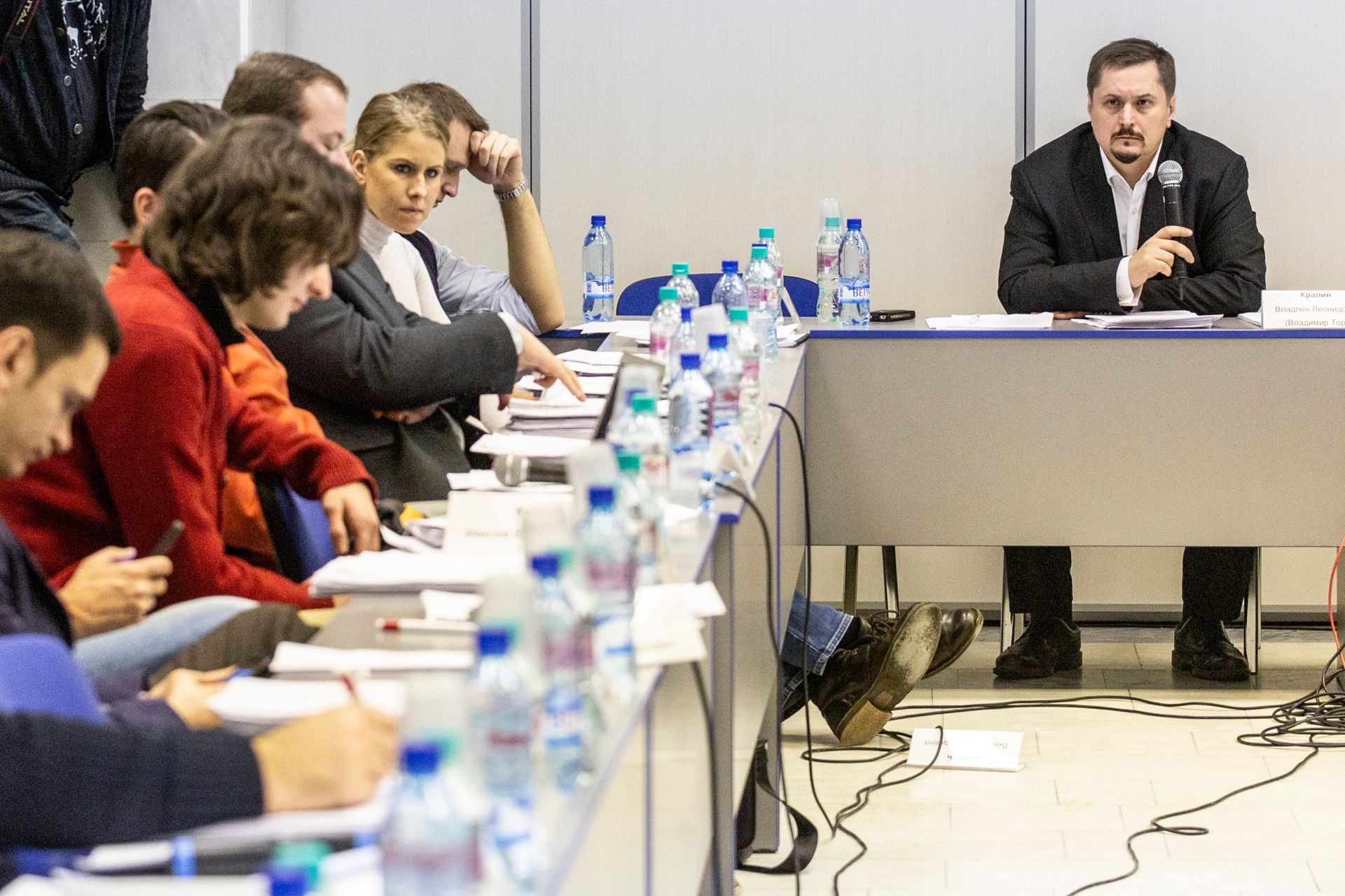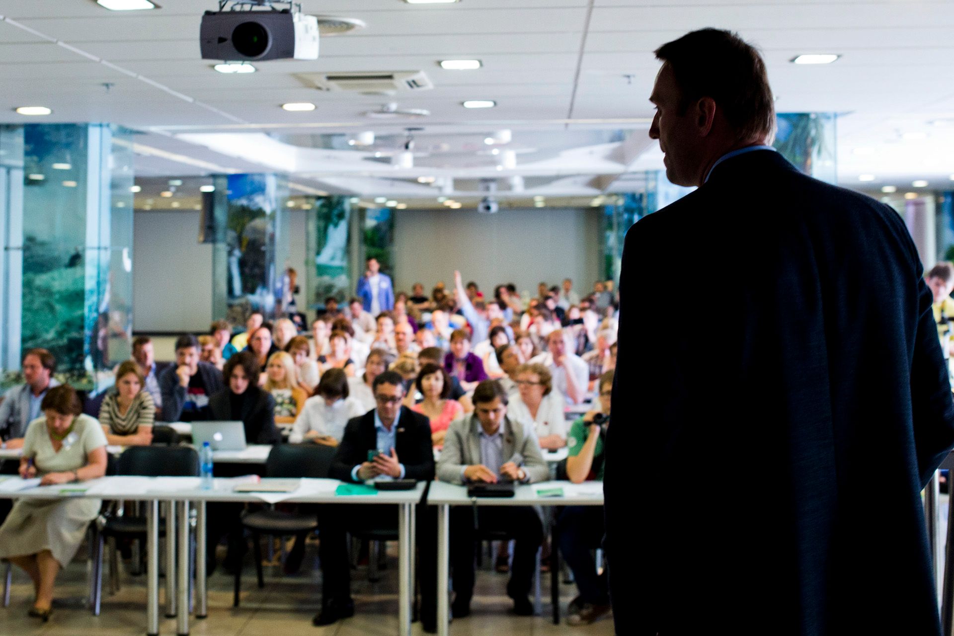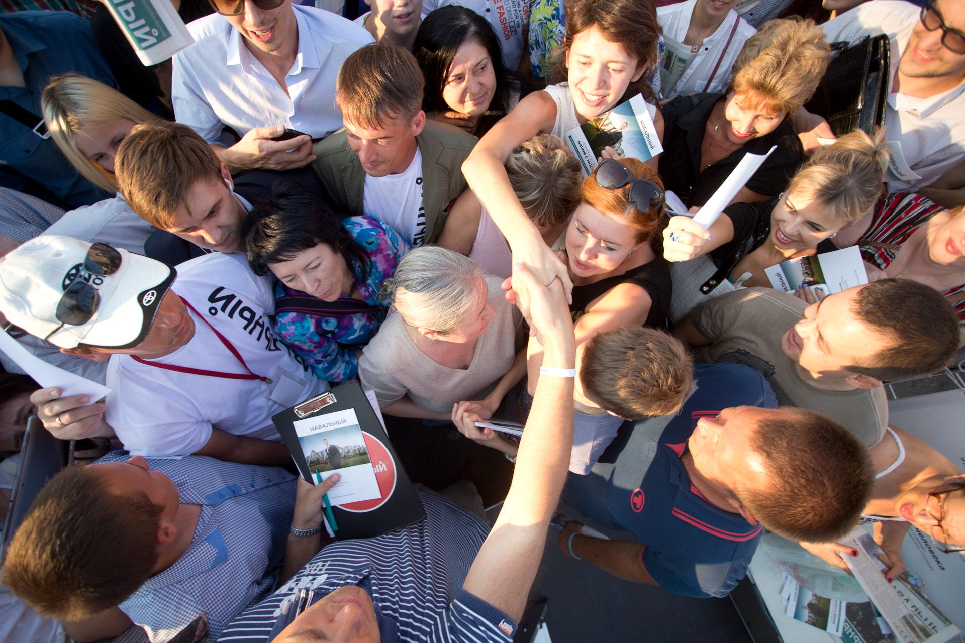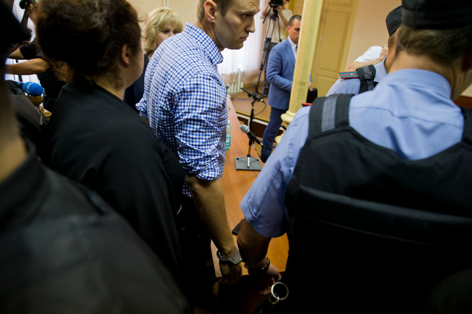 Евгений Фельдман 20 января. Четвертое заседание Координационного совета оппозиции. Справа — националист Владимир Тор, слева — Илья Яшин, Максим Кац, Любовь Соболь, Алексей Навальный. Оппозиционеры с трудом смогли собрать кворум для проведения заседания. Большинством голосов они проголосовали за проведение весной «Марша против палачей», а также призвали участников протестов 2012 года выступить свидетелями на заседаниях по «болотному делу».20 февраля. Депутат Госдумы Владимир Пехтин с парламентской трибуны объявляет о сложении депутатских полномочий. Это произошло после расследования ФБК о его незадекларированной квартире в Майами. Пехтин сначала заявлял, что заграничной недвижимости у него «практически нет», но всего через неделю был вынужден уйти из парламента.1 марта. Алексей Навальный в коридоре Басманного суда Москвы в перерыве между заседаниями. В тот день следователи добились продления ареста четырем фигурантам дела о «беспорядках» на Болотной площади 6 мая 2012 года.Андрей Смирнов / AFP / Scanpix / LETA 17 апреля. Алексей Навальный выступает перед журналистами с крыльца Ленинского районного суда в Кирове, где проходили слушания по делу «Кировлеса».Евгений Фельдман 25 апреля. Алексей Навальный в кировском суде задает вопросы Вячеславу Опалеву, главному свидетелю обвинения по делу «Кировлеса». Навального вместе с Петром Офицеровым обвиняли в хищении средств у государственного предприятия, так как они покупали у «Кировлеса» древесину, а затем перепродавали ее.Евгений Фельдман 6 мая. Алексей Навальный и его жена Юлия на сцене протестного митинга на Болотной площади в первую годовщину «Марша миллионов». Навальный закончил свою речь словами о том, что ему «некуда отступать»: «У меня нет другой страны, нет другой Москвы, нет другой семьи, нет другого народа, кроме вас!»Евгений Фельдман 15 мая. В ходе слушаний по делу «Кировлеса» около суда в Кирове регулярно проходили пикеты сторонников Навального. Несколько раз силовики мешали протесту и однажды изъяли плакат «Путин — вор».Евгений Фельдман 16 мая. Навальный с женой отдыхают на ступенях кукольного театра неподалеку от кировского суда в перерыве между заседаниями.Евгений Фельдман 15 июня. Алексей Навальный на форуме муниципальных депутатов — их подписи были необходимы для регистрации оппозиционера на выборах мэра Москвы. Накануне политик подал документы в Мосизбирком для участия в выборах.Евгений Фельдман 27 июня. Первый штаб мэрской кампании Навального. Активистка Оксана Баулина, ответственный за фандрайзинг Владимир Ашурков, глава штаба Леонид Волков, пресс-секретарь Анна Ведута и Алексей Навальный собирают подписи муниципальных депутатов.Евгений Фельдман Для регистрации на выборах Навальный должен был заручиться поддержкой 110 муниципальных депутатов, представляющих 110 районов Москвы. Во многих собраниях мандаты имели только единороссы — политик целыми днями звонил им, уговаривая поддержать свое выдвижение.Евгений Фельдман 30 июня. Сторонники Навального придумали использовать для уличной агитации металлические кубы с натянутыми на все грани плакатами. В один из дней Навальный присоединился к активистам, раздающим листовки — и укрылся от ливня вместе с прохожими под своим собственным портретом.Евгений Фельдман 10 июля. Мэрия предоставила Навальному 49 недостающих п