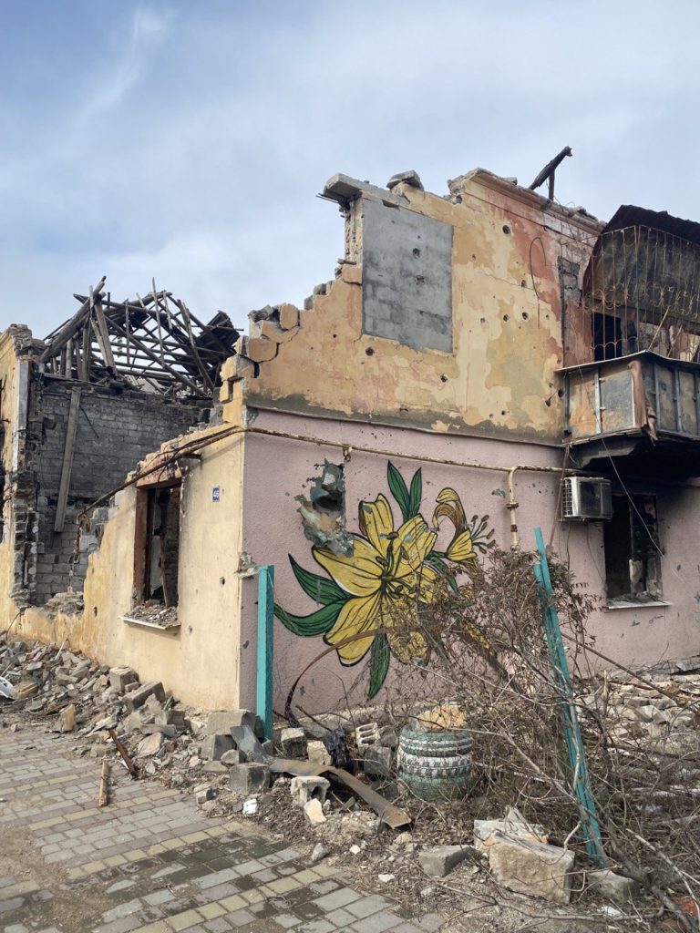 Но мне хочется рассказать, что, несмотря на тяжелое состояние, в котором находятся местные жители, они все-таки пытаются как-то жить. В марте я застала весеннюю уборку города. Как выяснилось, это ежегодная традиция мариупольцев. Не какой-то официальный день и не принудиловка, у них просто так принято. Люди выходят из своих квартир и начинают приводить все вокруг в порядок. Ты идешь по улице, видишь разрушенные, сожженные дома, и рядом стоит бабушка и тяпает своей тяпочкой клумбу, на которой уже зацвели первые крокусы. И это повсеместно. В России уклад жизни скорее такой, что дальше своей квартиры человек не высовывается, а там вот такой уклад жизни, который выглядит очень естественно. Наверное, это одно из немногих действий, которые позволяют сохранить рассудок и оставаться людьми.