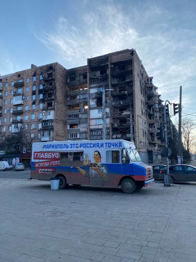 Когда я еще только планировала ехать в Мариуполь, я общалась с другими волонтерами, которые там уже бывали. Меня предупреждали, что военные выборочно забирают телефоны на проверку. Или говорили, что, когда ходишь по улице, надо смотреть вверх, потому что из-за сноса домов на голову может что-то прилететь. С этой точки зрения все оказалось лучше: телефон у меня ни разу не проверили, на голову ничего не прилетело.