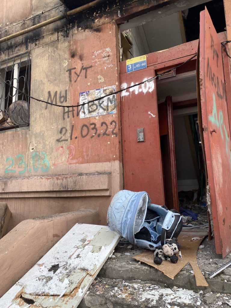 Мы с напарником-волонтером узнали про лежачую женщину с двумя детьми младшего школьного возраста. Хотели организовать для них трансфер до Петербурга. Когда мы вошли к ним домой, сразу почувствовали едкий запах гари, который пронизывал всю квартиру. На стенах была копоть, часть мебели валялась на полу после бомбежек, а женщина, видимо, совсем не вставала и все время смотрела телевизор. Состояние у нее было странное, некоторые вопросы ей приходилось задавать по несколько раз.