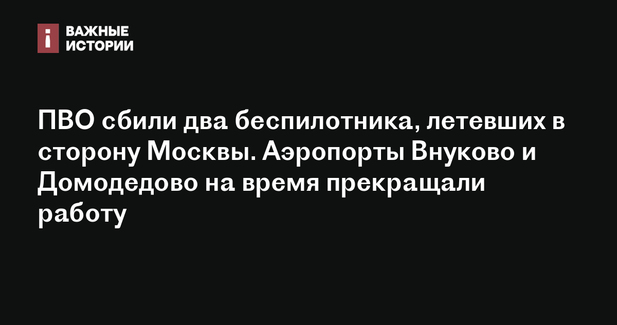 ПВО сбили два беспилотника, летевших в сторону Москвы. Аэропорты Внуково и Домодедово на время прекращали работу