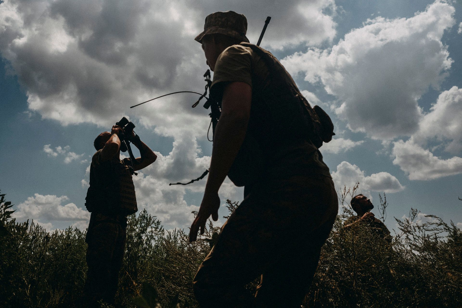 Солдаты ВСУ на наблюдательном пункте ищут в небе дроны