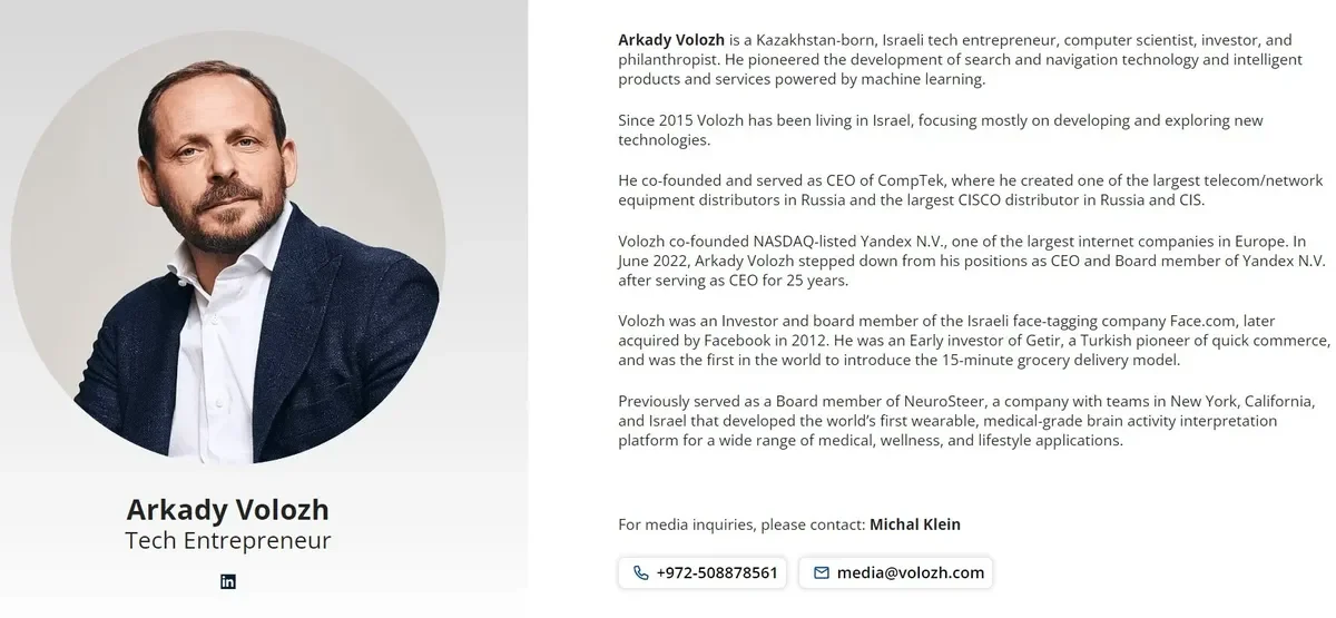 On 7 June, media outlets discovered that Volozh described himself as a “Kazakhstan-born, Israeli tech entrepreneur” in the biography section of his personal website. Following the beginning of Russia’s full-scale invasion of Ukraine, Volozh was blacklisted by the EU.