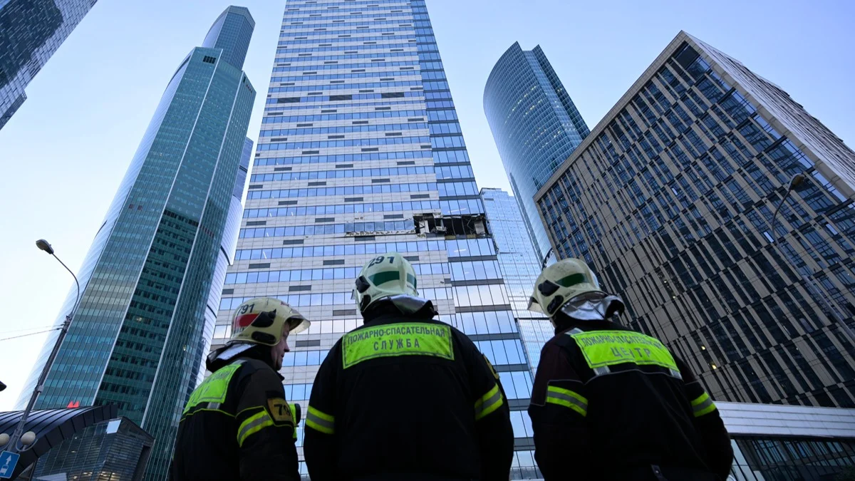 Последствия атаки беспилотников на башни в «Москва-сити». Фото: AP / TASS