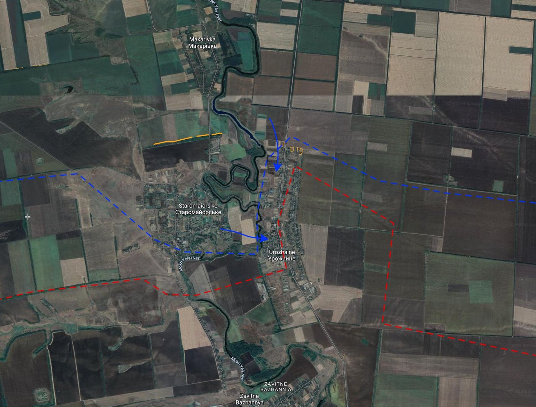 В сводке WarGonzo также говорится о наступательных действиях ВС РФ рядом с Ивановкой и Синьковкой на купянском направлении и ожесточенных боях в Урожайном на Времевском выступе. В Telegram-канале батальона «Восток» подтверждают продвижение украинских сил в Урожайном.