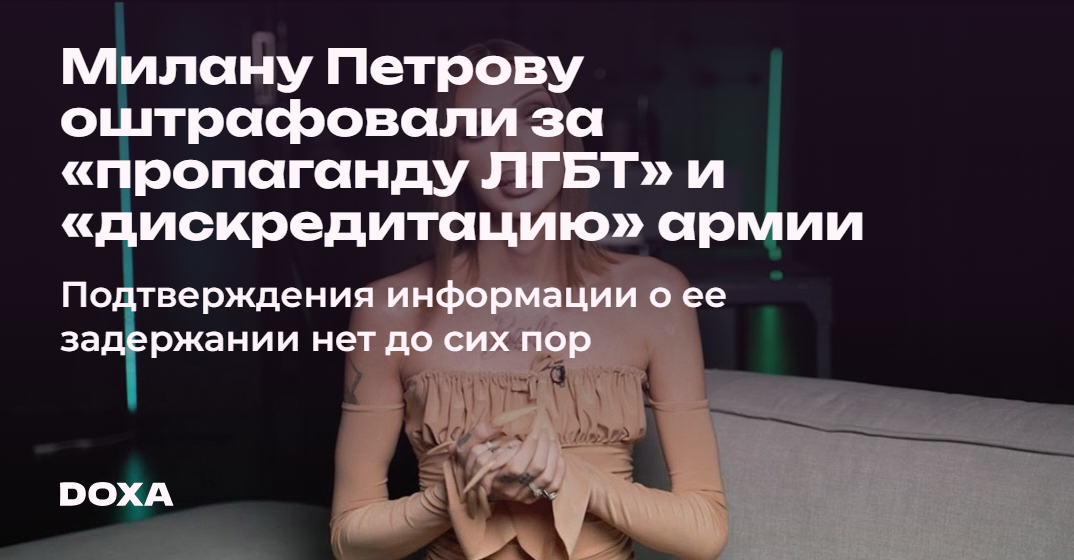 Трансгендерную блогерку Милану Петрову оштрафовали на 250 тысяч рублей за «пропаганду ЛГБТ» и «дискредитацию» армии
