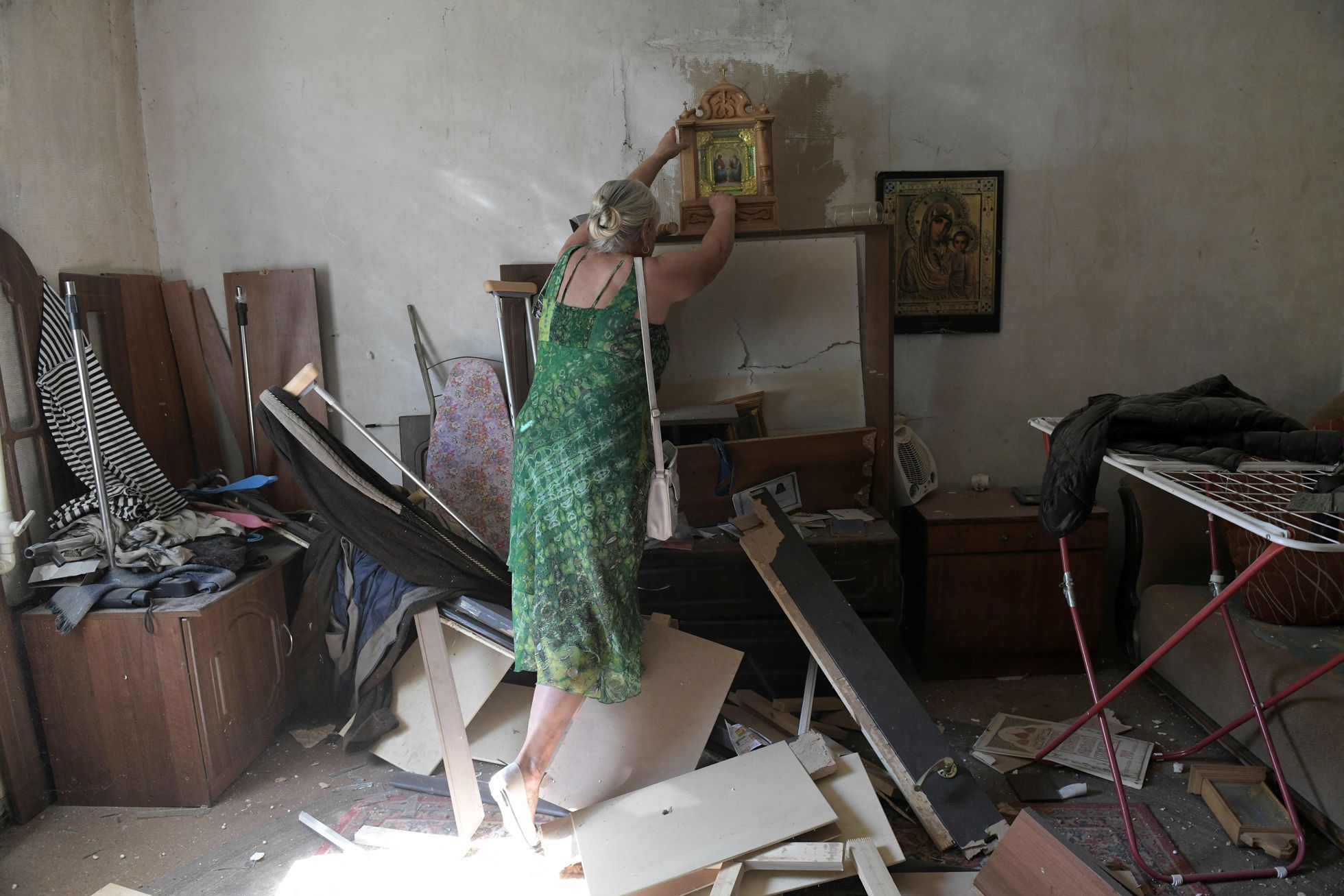 Жительница Донецка в разрушенном доме своего погибшего сына