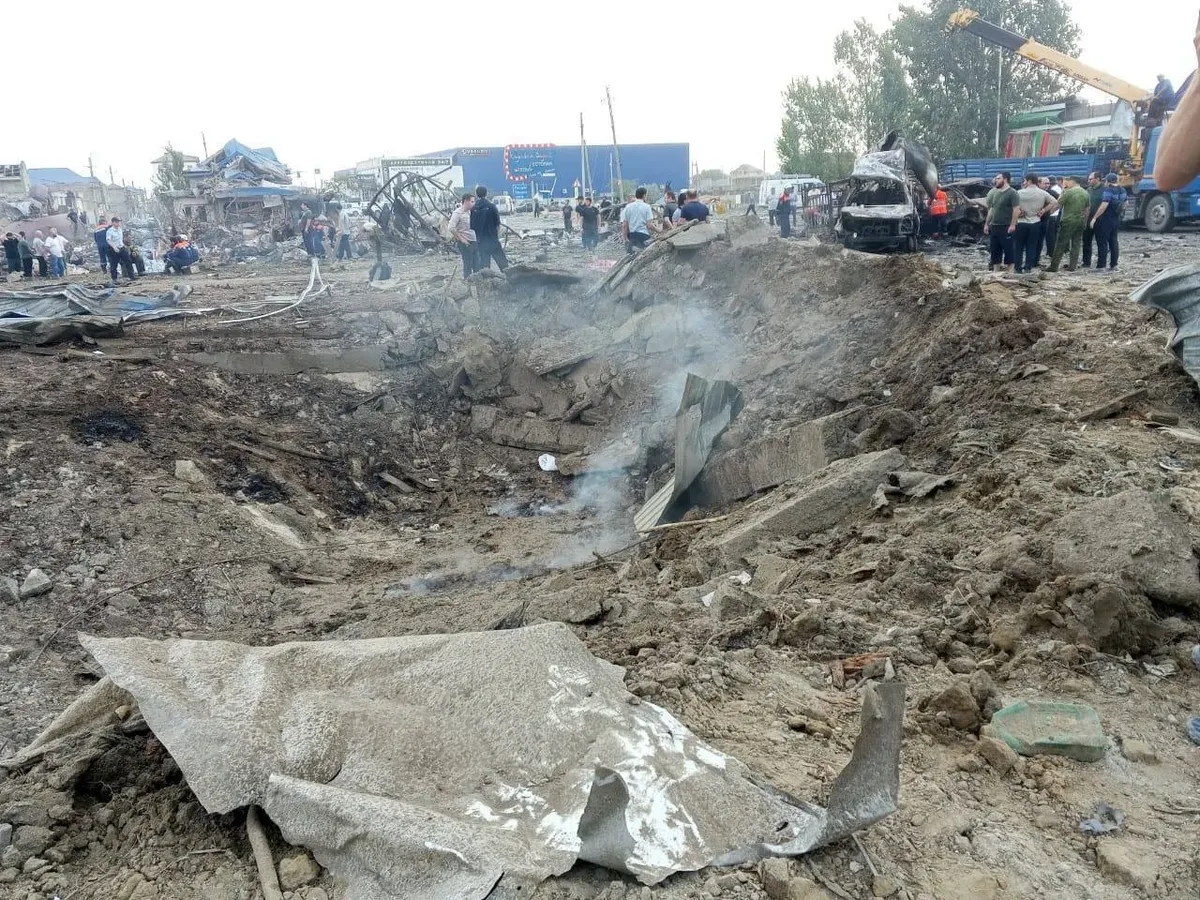 Последствия взрыва на автосервисе и крупной АЗС рядом с федеральной трассой «Каспий» в северном районе Махачкалы. Фото: тг-канал РГВК «Дагестан»