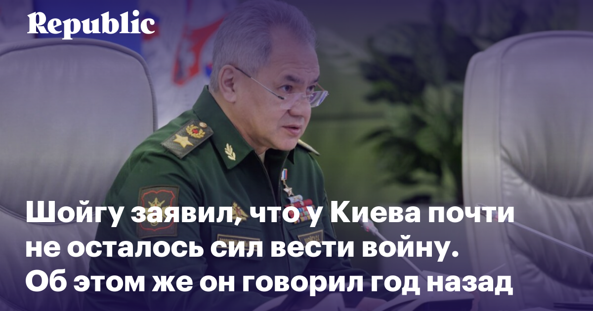 Министр обороны РФ Сергей Шойгу сегодня заявил о «почти полном исчерпании военных ресурсов Украины», несмотря на поддержку со стороны Запада. Похожие заявления он делал как минимум пять раз. Причем в том, что у противника якобы почти полностью уничтожены военно-воздушные силы и системы ПВО, разбиты силы ВМФ, «значительные потери понесли все соединения сухопутных и десантно-штурмовых войск», Шойгу уверял еще в начале полномасштабного вторжения в Украину.