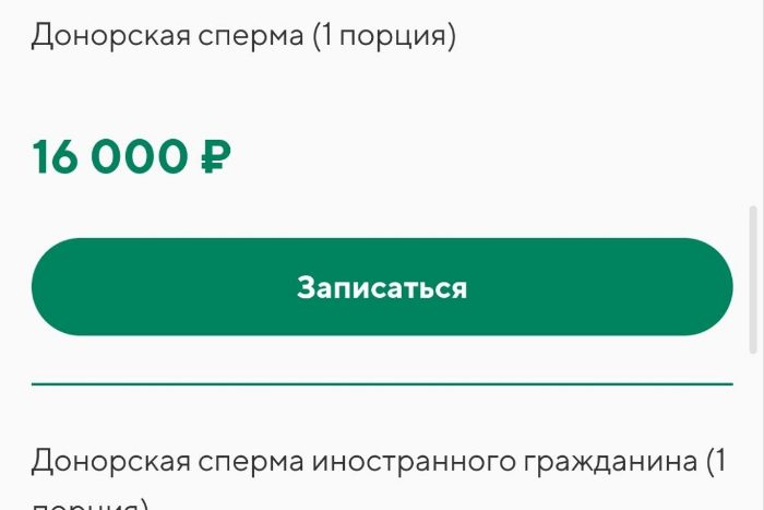 Детали. Порция спермы россиянина стоит 16 тысяч рублей, а иностранного гражданина — 35 тысяч рублей. На цены в центре планирования семьи обратили внимание пользователи твиттера в понедельник, 15 августа.