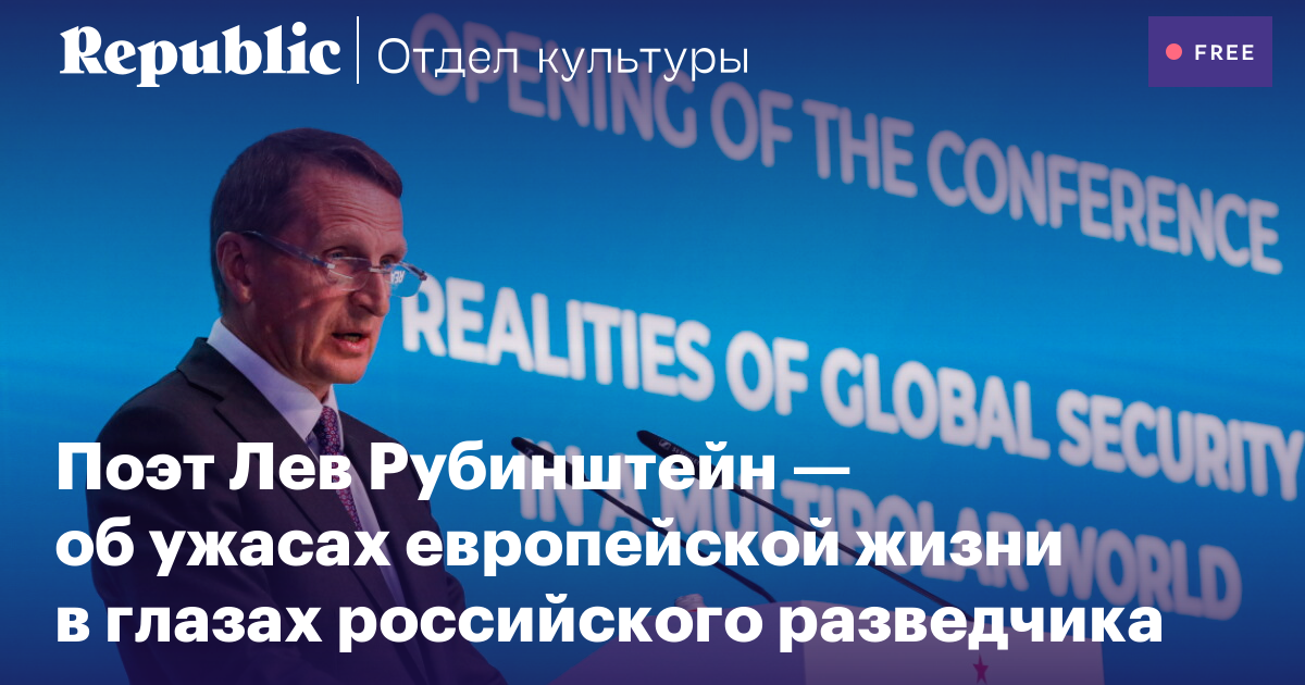 «Глава внешней разведки России Сергей Нарышкин, — с предвкушением неизбежного катарсиса читаю я в одной из новостных лент, — указал на серьезную опасность, с которой на сегодняшний день сталкиваются те, кто приезжают в Европу. По его словам, здоровому человеку боязно приезжать в Европу по причине широкого распространения там разного рода извращений».