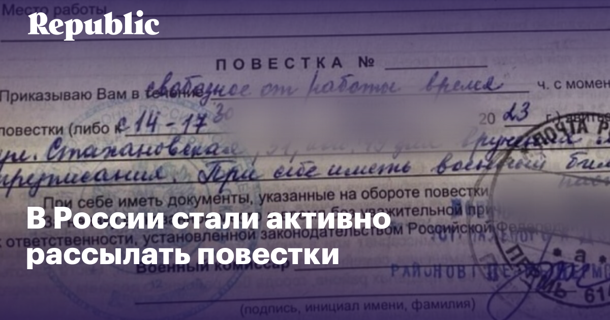 Жители российских городов сообщают о массовой рассылке повесток в военкоматы, в том числе для получения «мобилизационного предписания». В других случаях мужчин приглашают для «уточнения документов воинского учета». Тем, кто приходит, предлагают пойти на контрактную службу в армии. Эксперты считают, что вербовка на контракт не особо удается, поэтому власти задумываются о второй волне мобилизации.