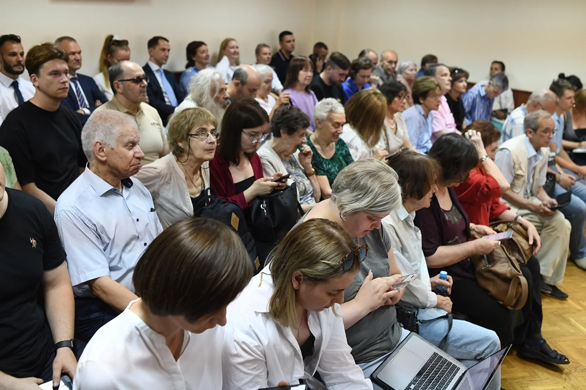 Привилегированной особой оказывается Вадим Мироненко, свидетель обвинения, допрошенный пару заседаний назад. Мироненко — исполнительный директор организации «Ветераны России», известной тем, что по их жалобе был ликвидирован «Мемориал»*. Мироненко, на допросе заявивший, что деятельность организации привела к распаду СССР, посещает каждое заседание.