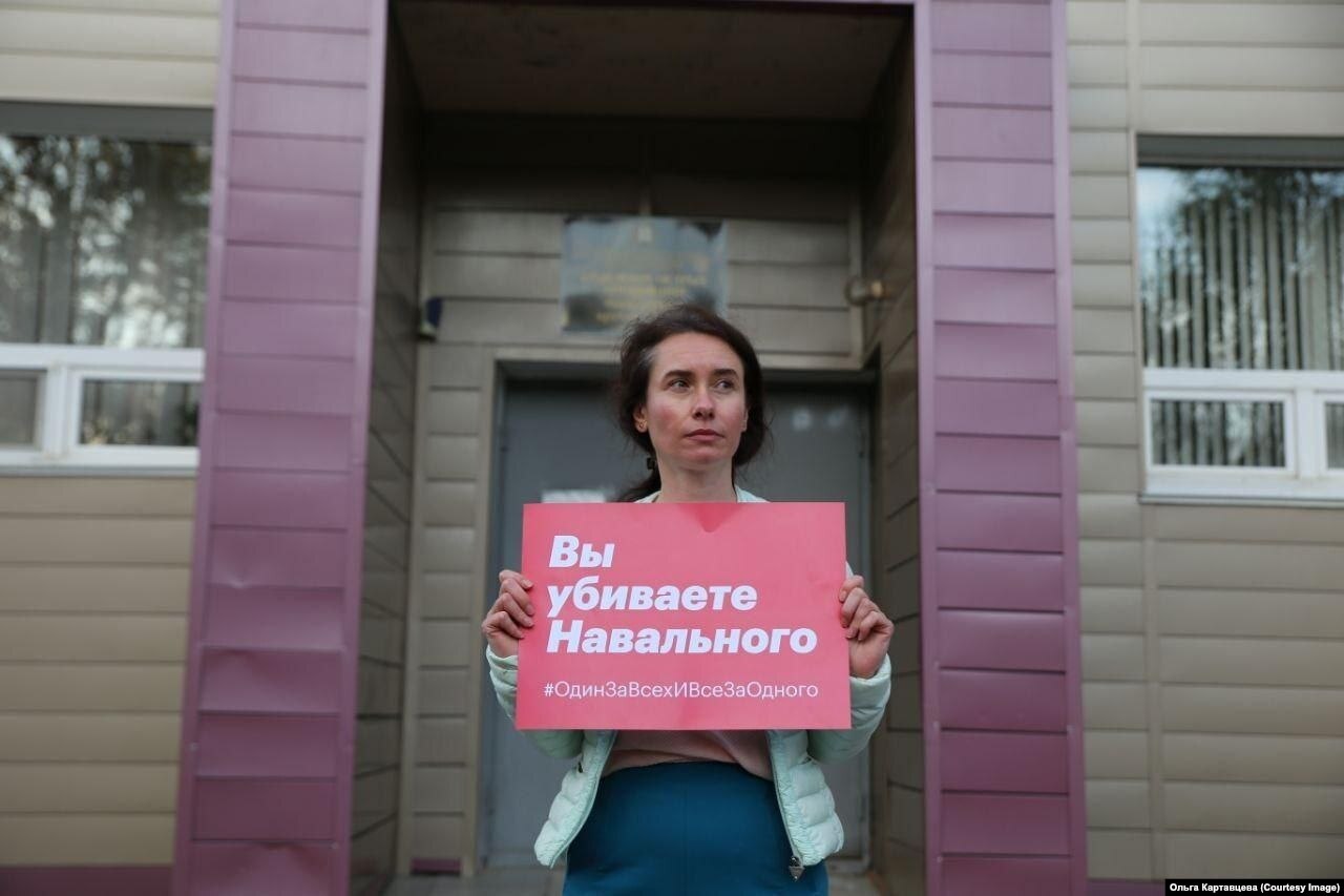 Бывшая координатор омского штаба Навального Ольга Картавцева была вынуждена покинуть Россию в связи с тем, что российские власти признали штабы Навального экстремистской организацией. В целях безопасности она не раскрывает место своего пребывания. О госпитализации Алексея Ольга узнала, по ее словам, из твита Киры Ярмыш, пресс-секретаря Навального: