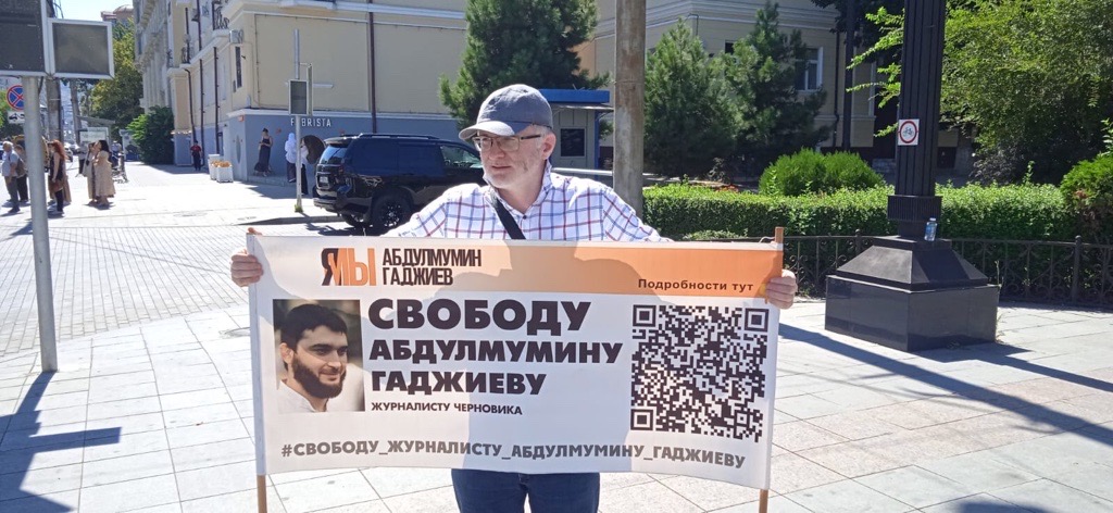 В Махачкале снова прошли одиночные пикеты с требованием прекратить уголовное преследование в отношении журналиста газеты "Черновик" Абдулмумина Гаджиева. Его судят по делу о финансировании терроризма –журналист был признан политзаключенным, а его адвокаты неоднократно заявляли о фальсификации дела.