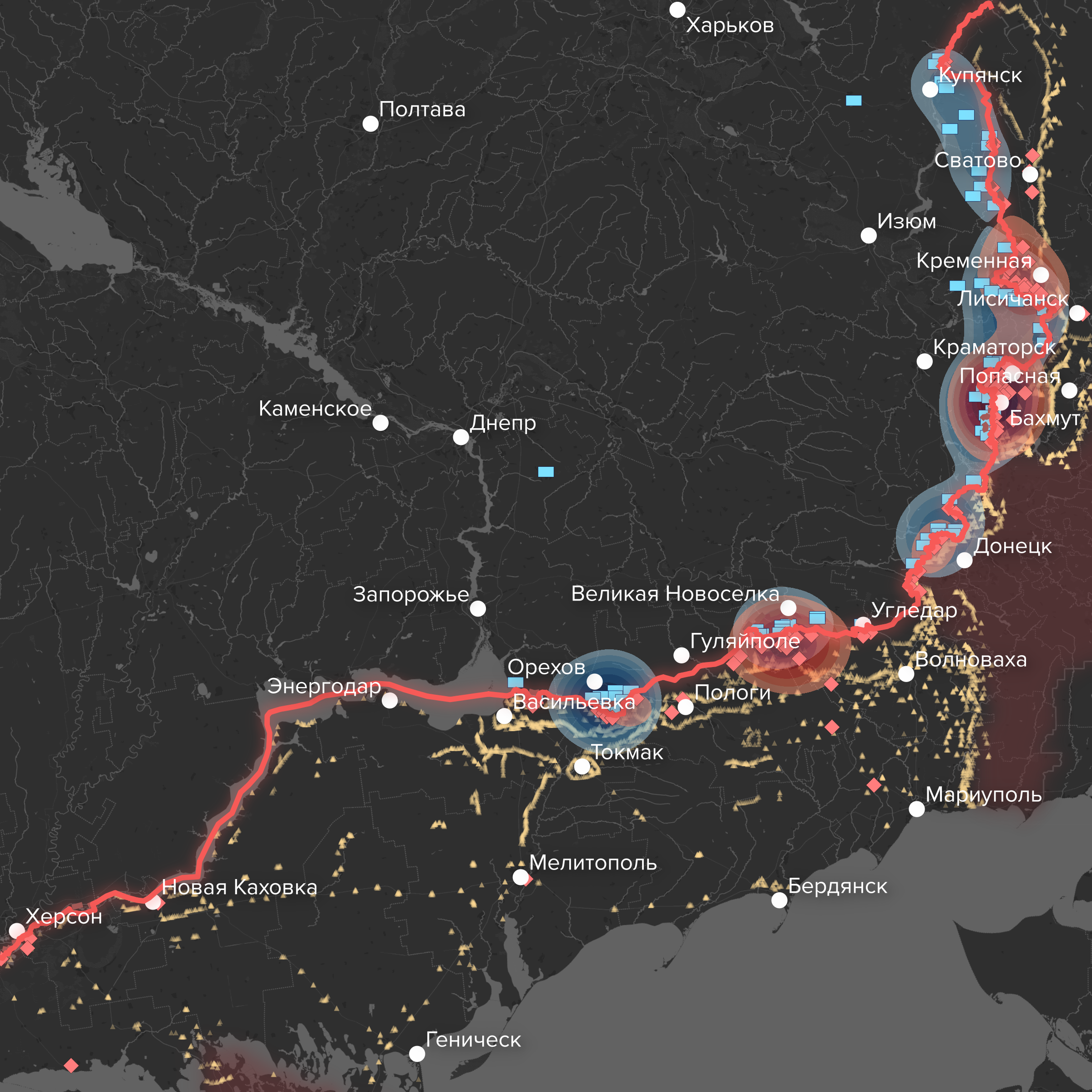 - Несмотря на то что войск для такой линии фронта мало и их плотность невелика по сравнению с классическими примерами позиционного тупика вроде Первой мировой или корейской войны, на поле боя все равно возникает тупик: каждый из противников благодаря многочисленным разведывательным беспилотникам хорошо понимает действия врага около фронта и может наводить на атакующие части артиллерию, наносить удары дронами-камикадзе и дальнобойными противотанковыми ракетами.