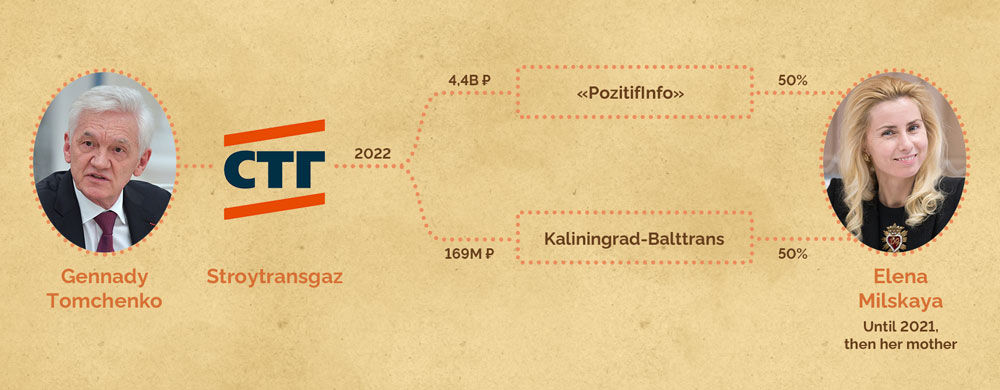 In 2022, the revenue of Milskaya’s three Kaliningrad firms amounted to 4.6 billion rubles. This money was mostly earned thanks to contracts with Stroytransgaz. In particular, last year PozitivInfo received at least 1.8 billion rubles for its work on the presidential construction project.