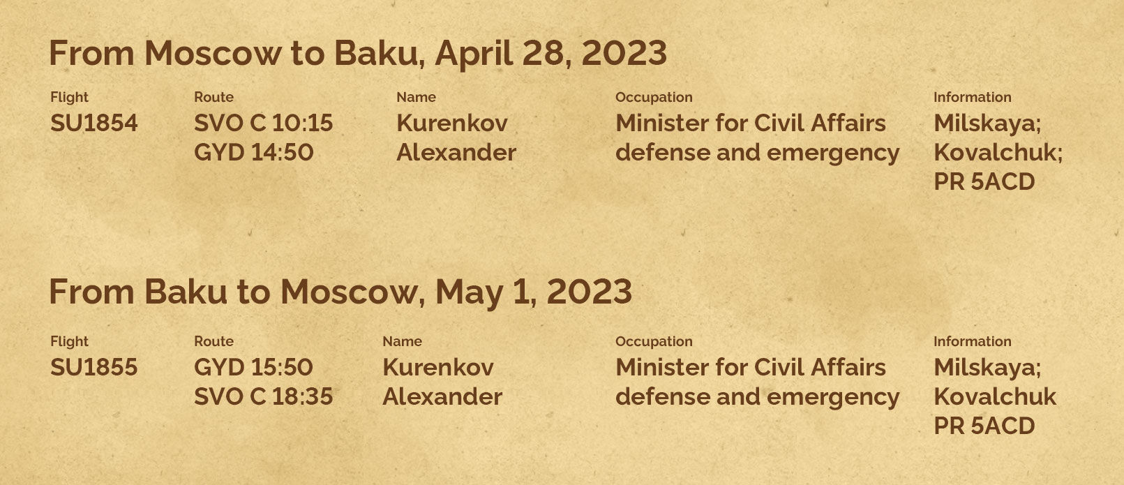 It would be logical for the head of the Ministry of Emergency Situations, Alexander Kurenkov, to be personally overseeing the efforts to contain the fire and help the people. But in reality, things were not quite like that. Instead, on April 28, the minister, his wife and her son from a previous civil marriage flew to Baku for May Day. Judging by official reports, there were no fires or any official events in Azerbaijan at that time that required the participation of the head of the Ministry of Emergencies. Most likely, it was a vacation. The minister reached Kurgan Oblast only on May 8 to “define a strategy for fire suppression” (quoted from TASS). By that time, fires had already broken out in the neighboring Tyumen Oblast.
