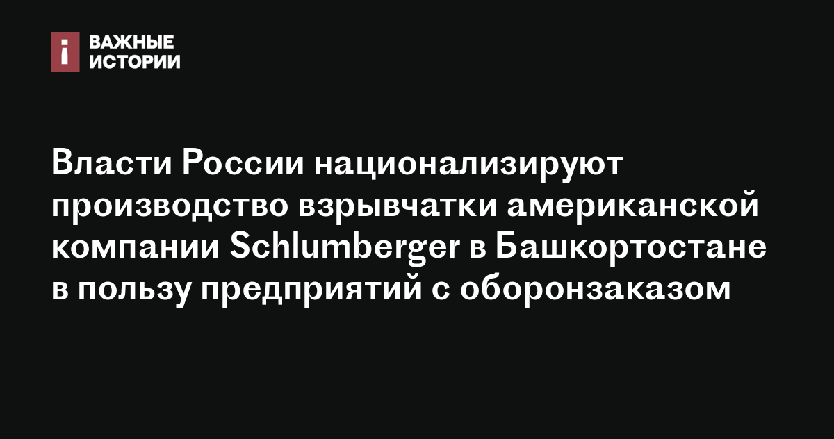 Власти России национализируют производство взрывчатки американской компании Schlumberger в Башкортостане в пользу предприятий с оборонзаказом