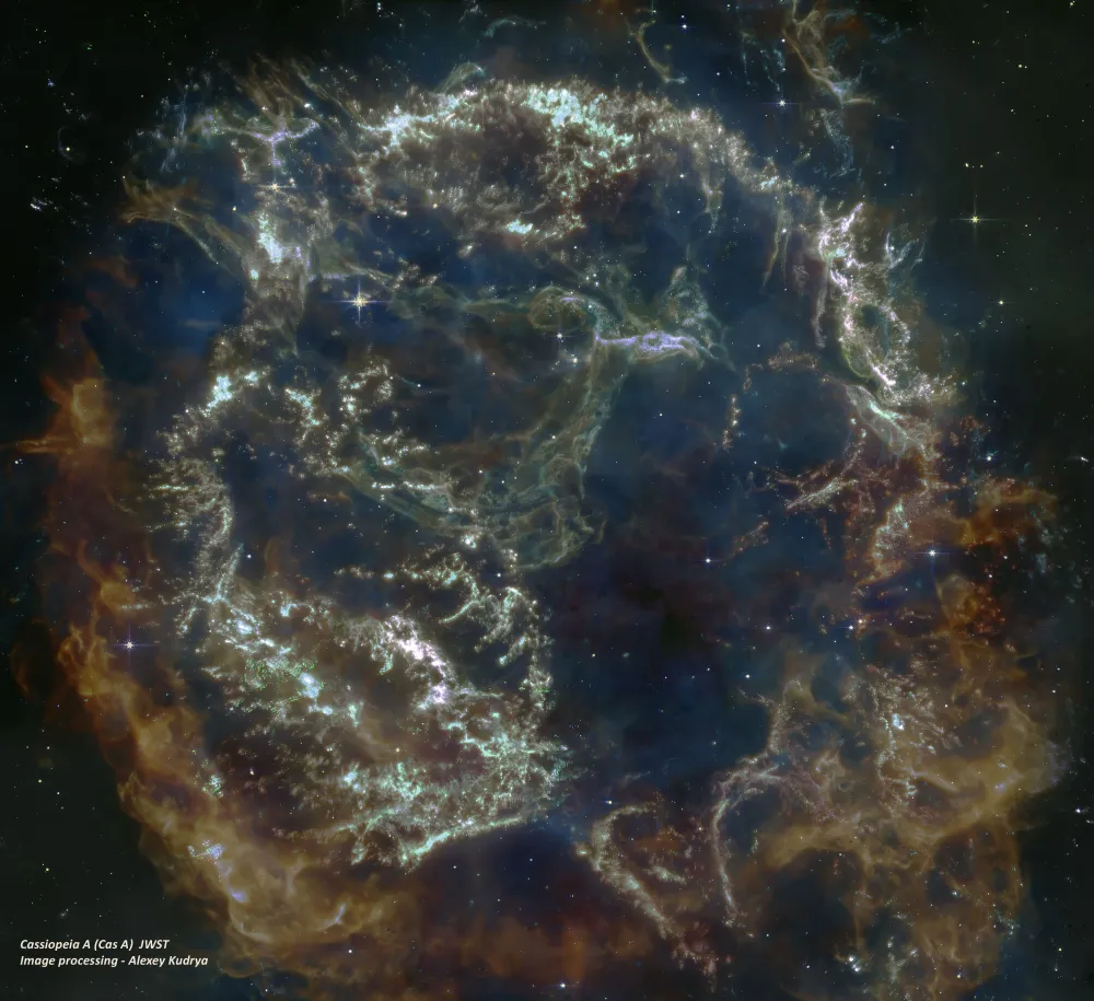 Космический телескоп «Джеймс Уэбб» недавно предоставил замечательные изображения южного рукава галактики в Треугольнике (Messier 33 / NGC598 — JWST MIRI) и остатки вспышки сверхновой Кассиопея A.