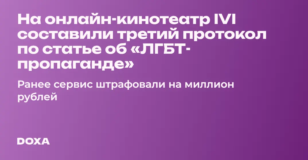 На онлайн-кинотеатр IVI составили третий протокол по статье об «ЛГБТ-пропаганде». Ранее сервис штрафовали на миллион рублей