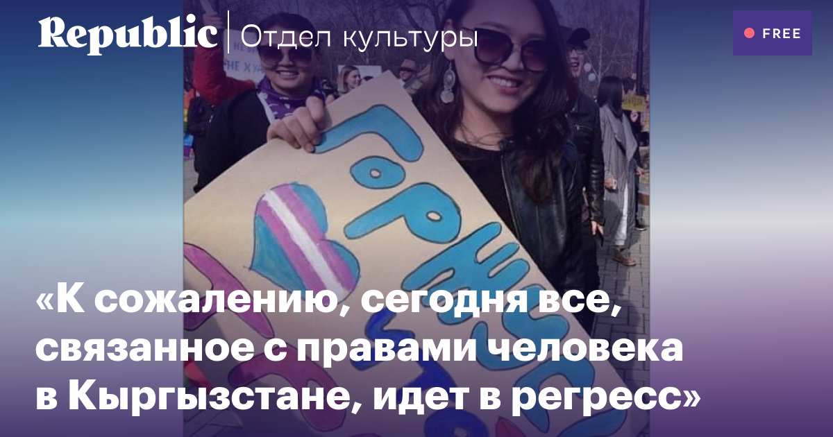 К сожалению, сегодня все, связанное с правами человека, со свободой слова, с демократией в Кыргызстане идет в регресс. И это, разумеется, касается ЛГБТ-людей. Например, недавно раскрыли идентичность сотрудников одной ЛГБТ-организации, у них были проблемы с семьями, которые не знали об их негетеросексуальности. В последние годы становится все хуже и хуже. Местные ЛГБТ-организации документируют нарушения прав, и там много случаев дискриминации, насилия со стороны государства, правоохранительных органов. Я состою в нескольких закрытых группах трансгендерных людей, и там часто обсуждают такие кейсы.