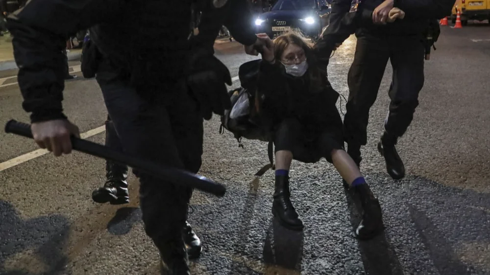 только что на пикет вышла незрячая (!) девушка — ее, конечно, взяли, а война продолжается.