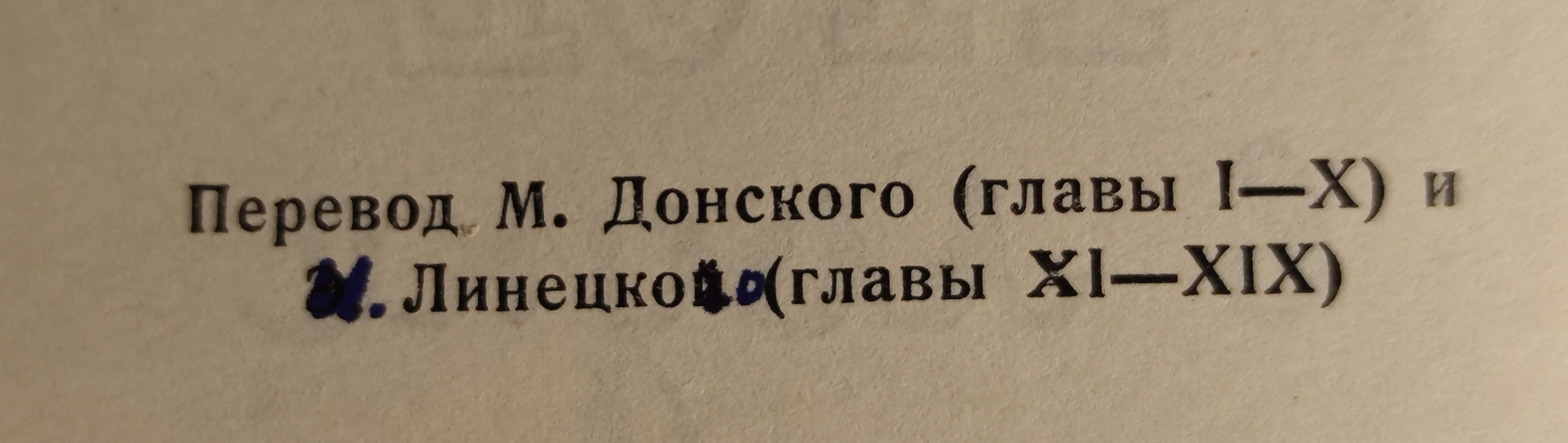 – Эльга хотела ему помочь, нужна была подработка, к тому же это его безумно интересовало. Книга вышла в 1958-м, значит, он начал переводить где-то годом раньше. Она была уже тогда членом Союза переводчиков, а неизвестному человеку такой заказ не дали бы. Она получила заказ и отдала ему. На этой книжечке написано: "Перевод М. Донского и Э. Линецкой". Здесь мои родители переправили: "И. Линецкий".