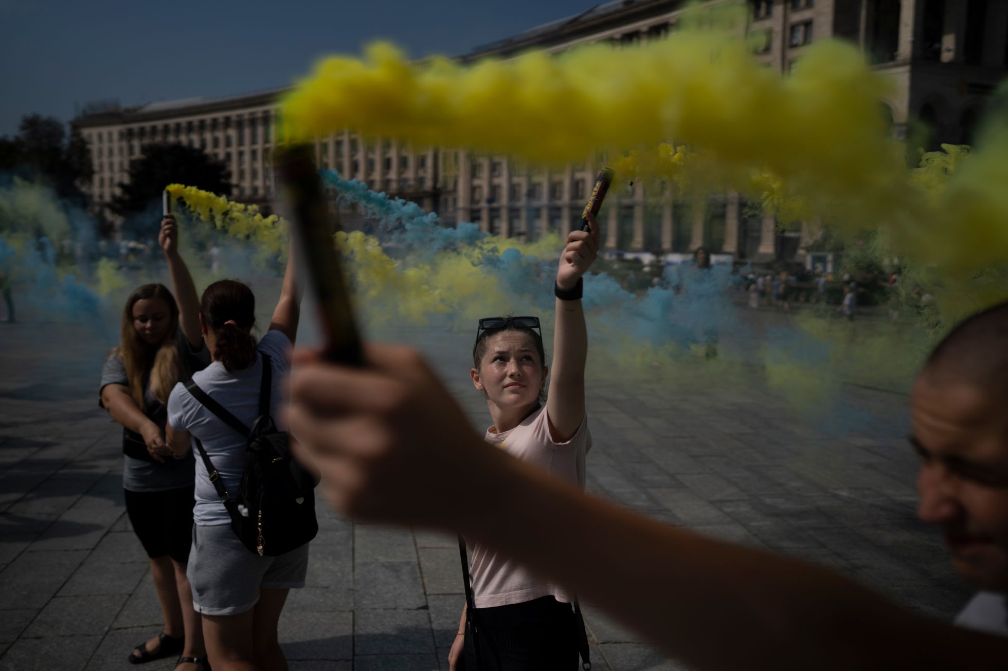Около двухсот киевлян вышли на акцию в центр города. Они хотели привлечь внимание к защитникам Мариуполя, которые почти 500 дней находятся в российском плену