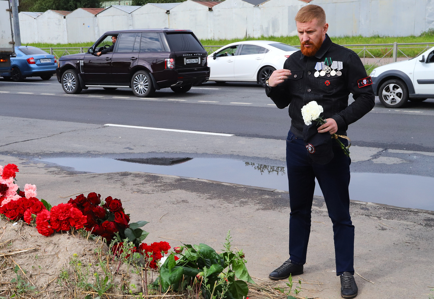 ФОТО ОБЛОЖКИ: Мужчина у мемориала в память о Евгении Пригожине рядом с бизнес-комплексом «Морская столица», 24 августа 2023 года. Фото: «Бумага»