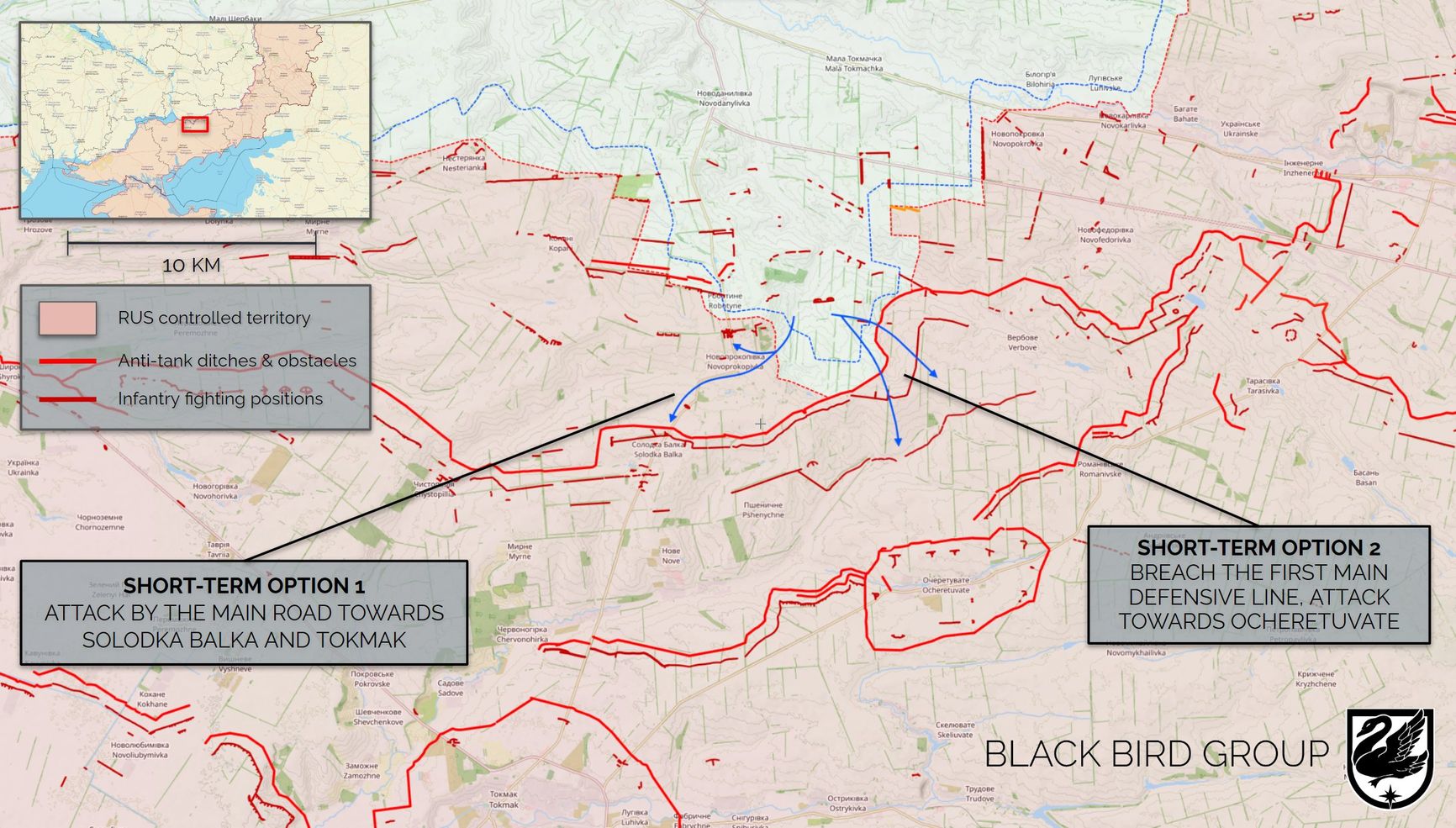 По оценке Кастехелми, существует два варианта дальнейших действий: пытаться занять Новопрокоповку и дальше штурмовать сильно укрепленные позиции по направлению на Токмак либо прорывать линию обороны восточнее под Вербовым с выходом на Очеретоватое.