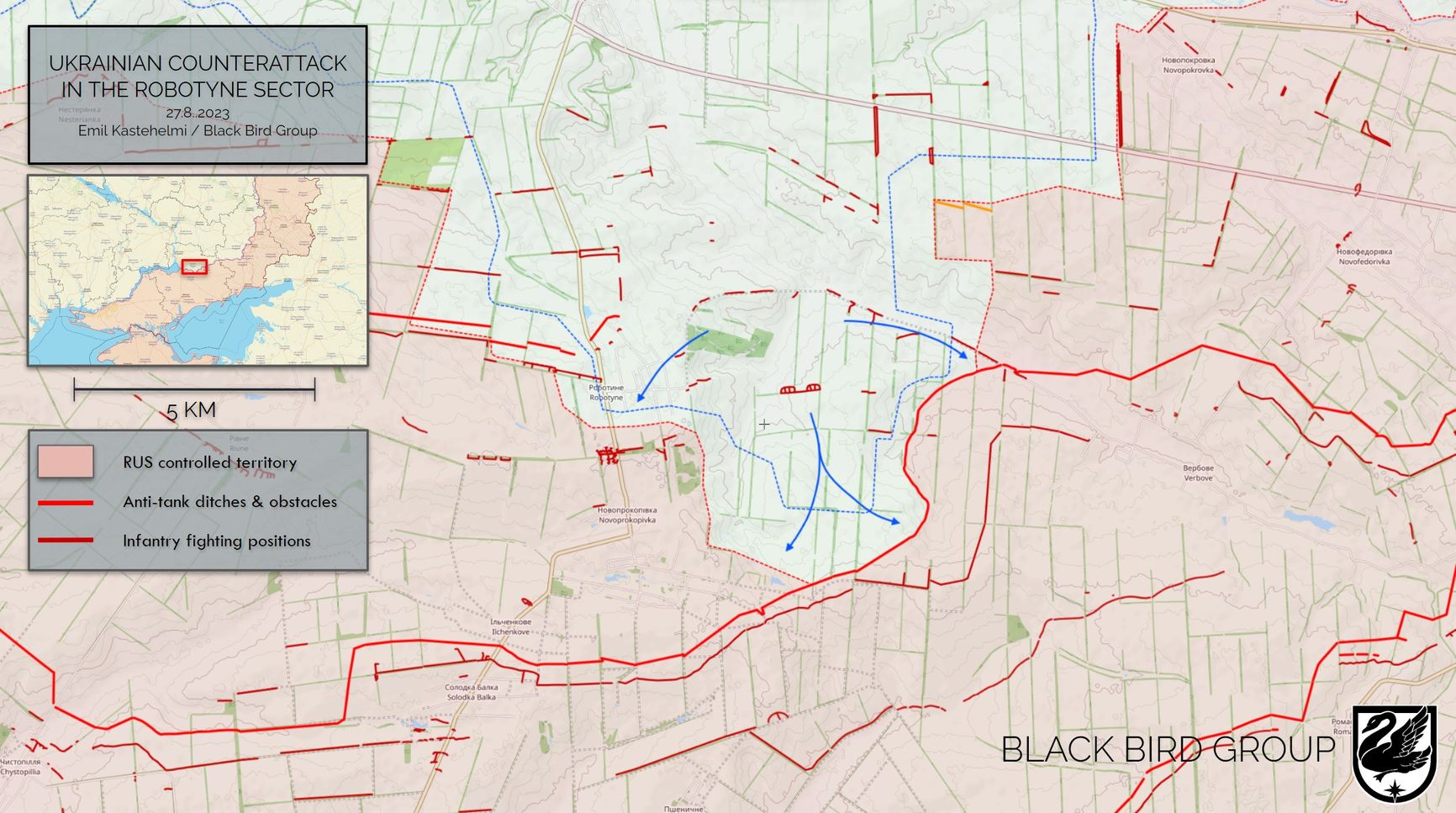 Исследователь Эмиль Кастехелми из Black Bird Group соглашается с тем, что украинские войска вышли к главной линии обороны ВС РФ, расположенной южнее Работино.