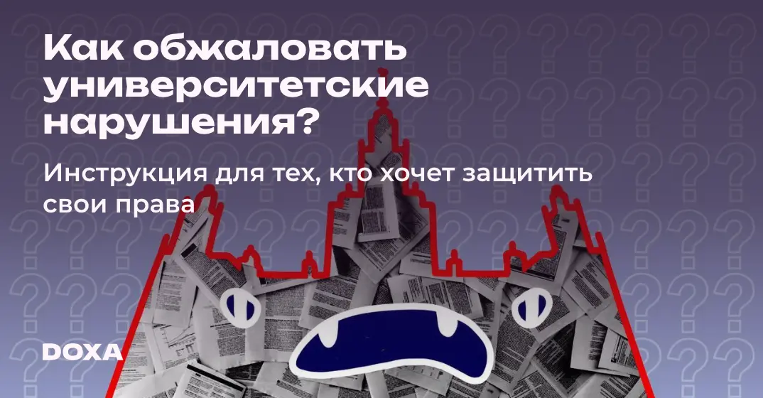 DOXA постоянно рассказывает о трудностях, с которыми сталкиваются студенты по всей стране: их отчисляют за участие в протестах, вводят чрезмерные карантинные меры и комендантский час или просто не могут предоставить хорошие условия для жизни и учебы. Совместно с адвокатом «Агоры» и «Сетевых свобод» Леонидом Соловьевым, мы поэтапно объясняем, как и куда обращаться, если вуз намеренно нарушил ваши права.