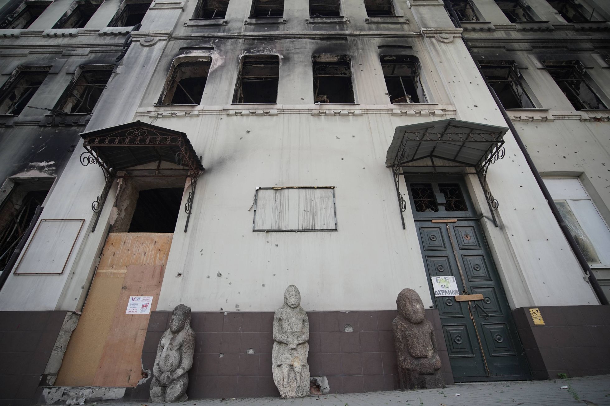 Alexandr Suhov / Sputnik / IMAGO / SNA / Scanpix / LETA Фасад Мариупольского краеведческого музея, поврежденного во время обстрелов. Музей открылся в 1920 году, его коллекция насчитывала более 53 тысяч артефактов Приазовья разных эпох. Экспонаты были представлены в четырех отделах: «Природа», «История досоветского периода», «Советская история» и «Современность»Alexandr Suhov / Sputnik / IMAGO / SNA / Scanpix / LETA После начала полномасштабной войны и боев за Мариуполь здание музея сильно пострадало. Как пишут украинские СМИ, часть экспозиции сгорела, многие экспонаты украли российские военные и представители назначенной Кремлем администрацииAlexandr Suhov / Sputnik / IMAGO / SNA / Scanpix / LETA Как пишет российское издание «Таганрогская правда», среди утраченных экспонатов — грамота Екатерины II, пожалованная грекам, переселившимся на побережье Азовского моря, и кресло митрополита Игнатия — епископа Константинопольской, а затем Русской православной церкви, жившего в XVIII веке, причисленного к лику святых и канонизированного в 2017 годуAlexandr Suhov / Sputnik / IMAGO / SNA / Scanpix / LETA Как рассказала «Таганрогской правде» директор музея Раиса Божко, после начала боев в городе мариупольские музеи долго «стояли без охраны» (сама она вернулась в уже оккупированный город в июне 2022 года): «Туда можно было зайти и спокойно что-то забрать». По ее словам, уцелели работы Ивана Айвазовского, Архипа Куинджи и другие исторические артефакты, общая стоимость которых оценивается в полтора миллиона долларов. Сохранившиеся экспонаты сотрудники музея перенесли в новое здание, пока идет реставрация разрушенного корпуса, которой занимается Российское историческое общество