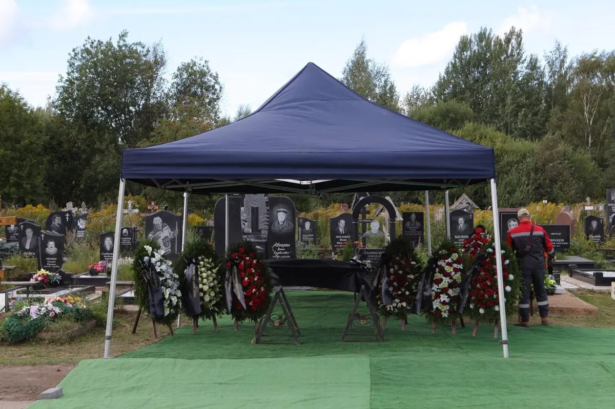 Around 100 people were present at the ceremony in the Severny cemetery, including several navy officers, Wagner fighters, and Prigozhin’s bodyguard Sergey Plaschenko.
