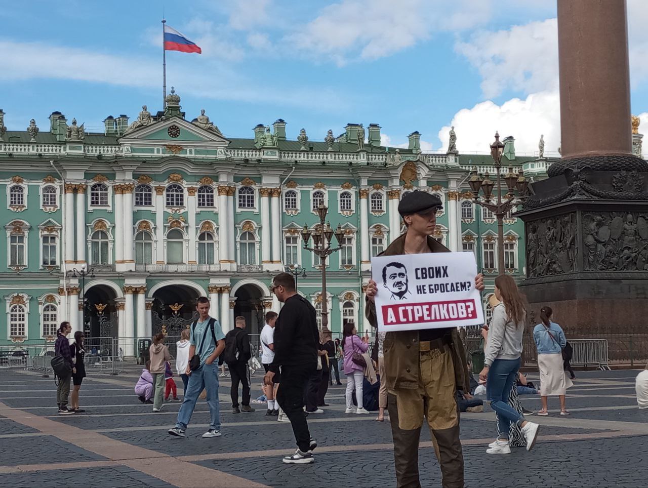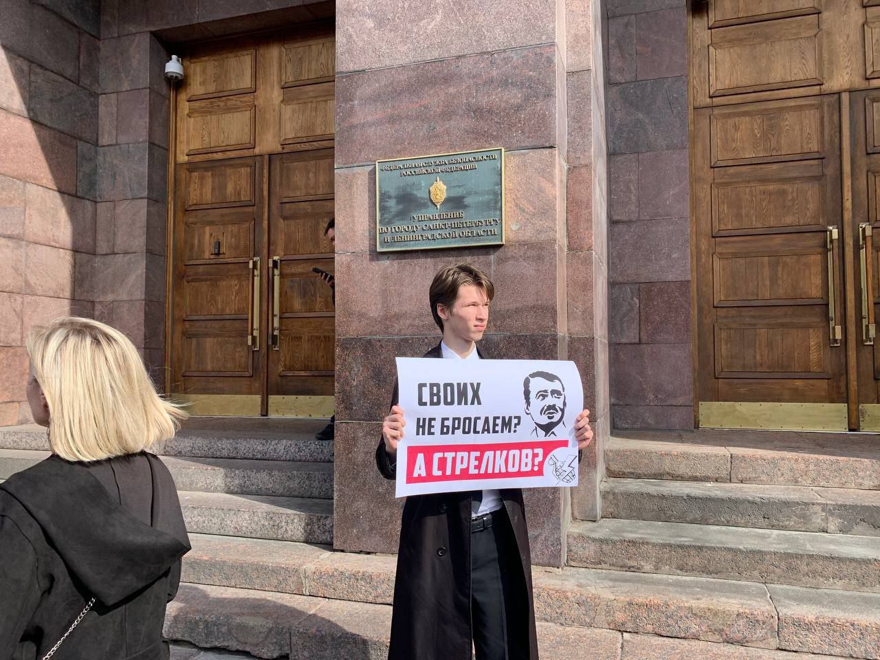 Детали. Дмитриева задержали на Малой Садовой, ему вменяют нарушение коронавирусных ограничений. Илья Степанов вышел с плакатом к зданию ФСБ на Литейном проспекте, а Виктор Зайцев — на Дворцовую площадь.