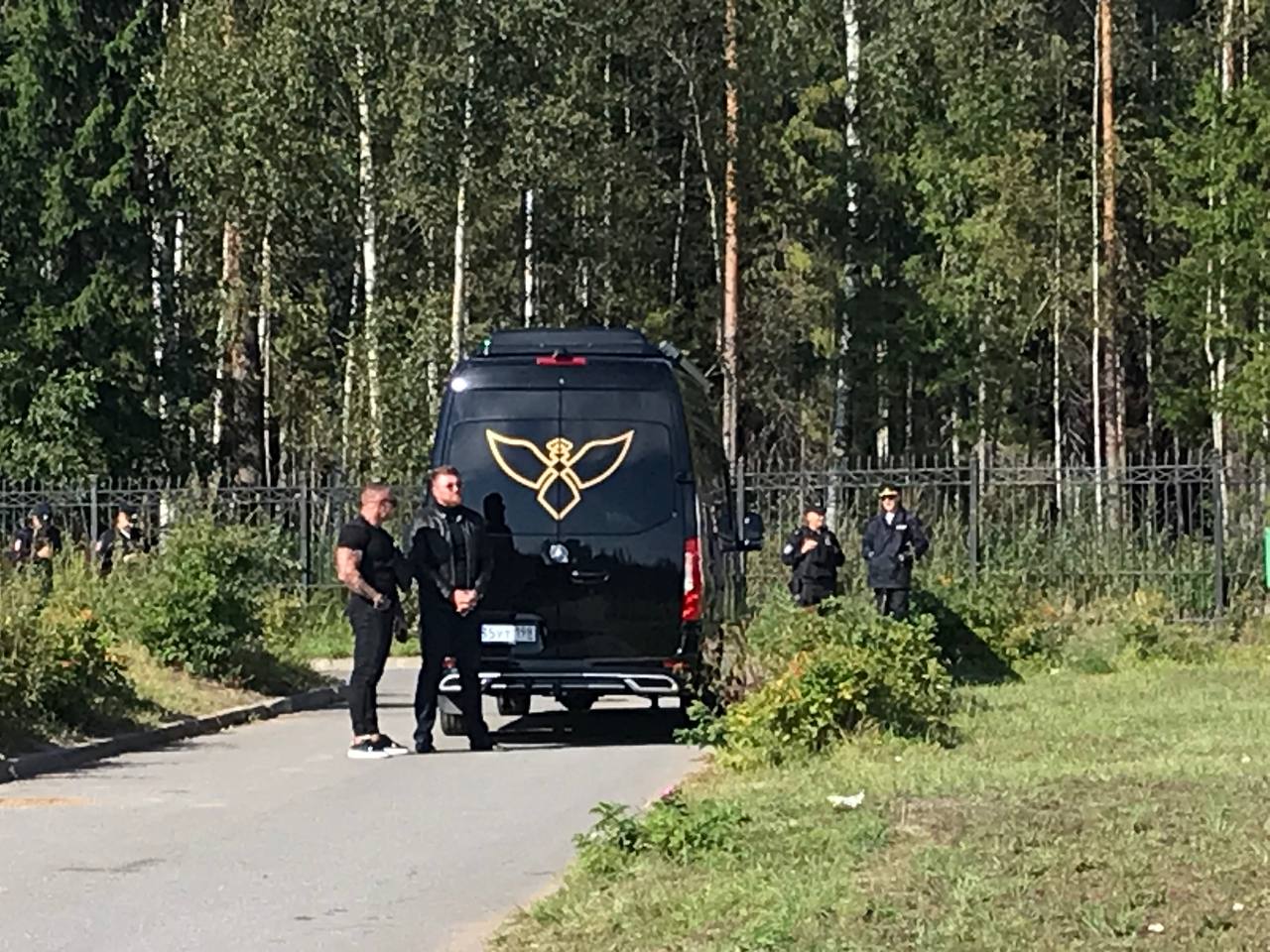 — Нас вчера домой не отпускали. Мы тут всё убирали, — объясняет газонокосильщик. По его словам, «ничего про предстоящие похороны Евгения Пригожина или его помощников здесь не знают ни сотрудники, ни директор».