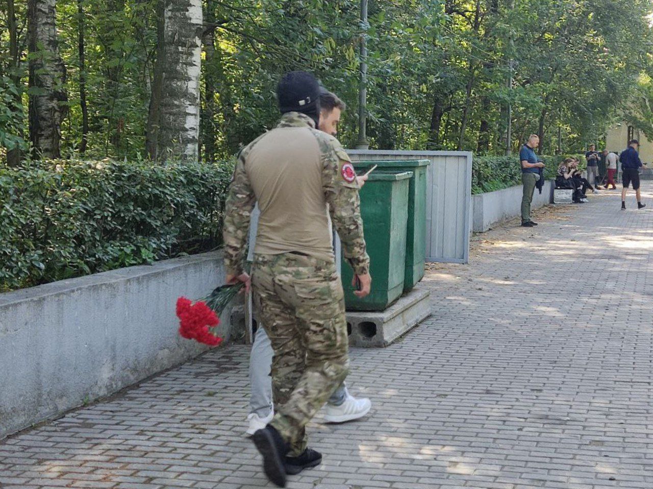 Кроме журналистов на Серафимовское кладбище пришли еще несколько десятков человек, среди них – несколько мужчин в военной форме с нашивками ЧВК "Вагнер" и с красными гвоздиками. Походив по главной аллее кладбища около часа, мужчины ушли.