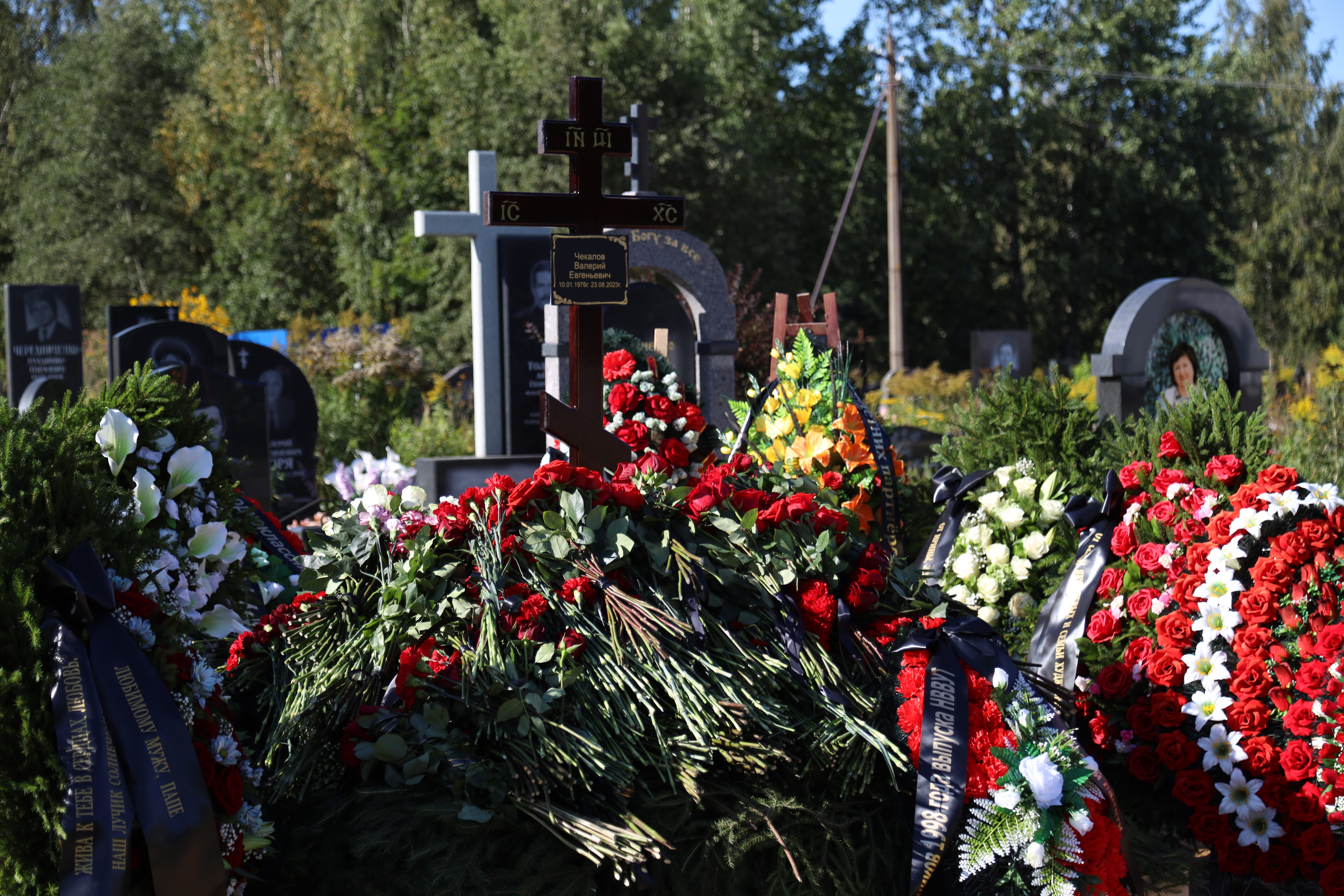 Спустя час церемония закончилась, на могиле Чекалова выложили еловый лапник, сотни гвоздик и траурные венки.