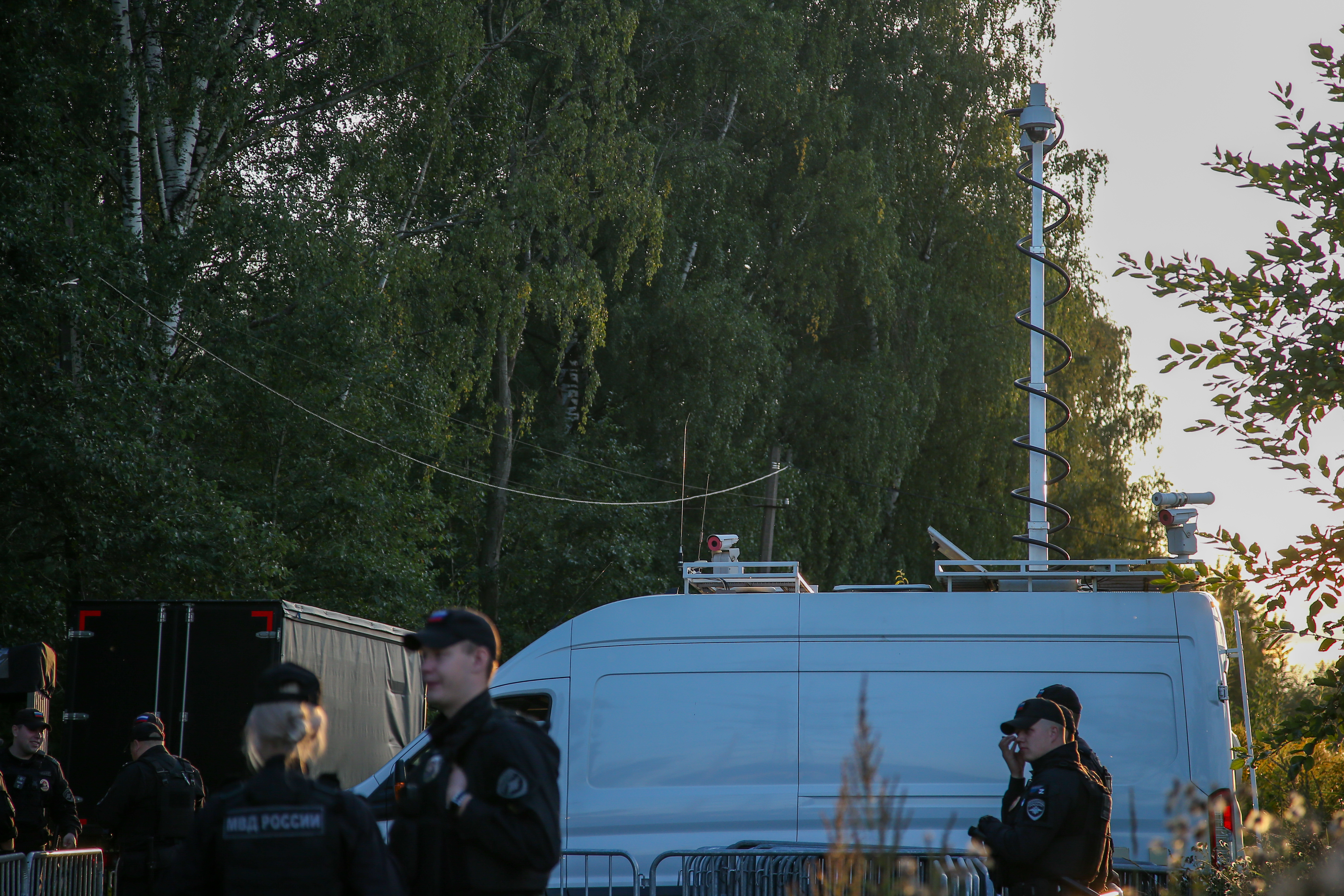 Утром 29 августа полиция оцепила территорию около Серафимовского кладбища на севере Петербурга: десятки машин МВД стояли вдоль ограды, ближайшие подъезды закрыли для водителей.