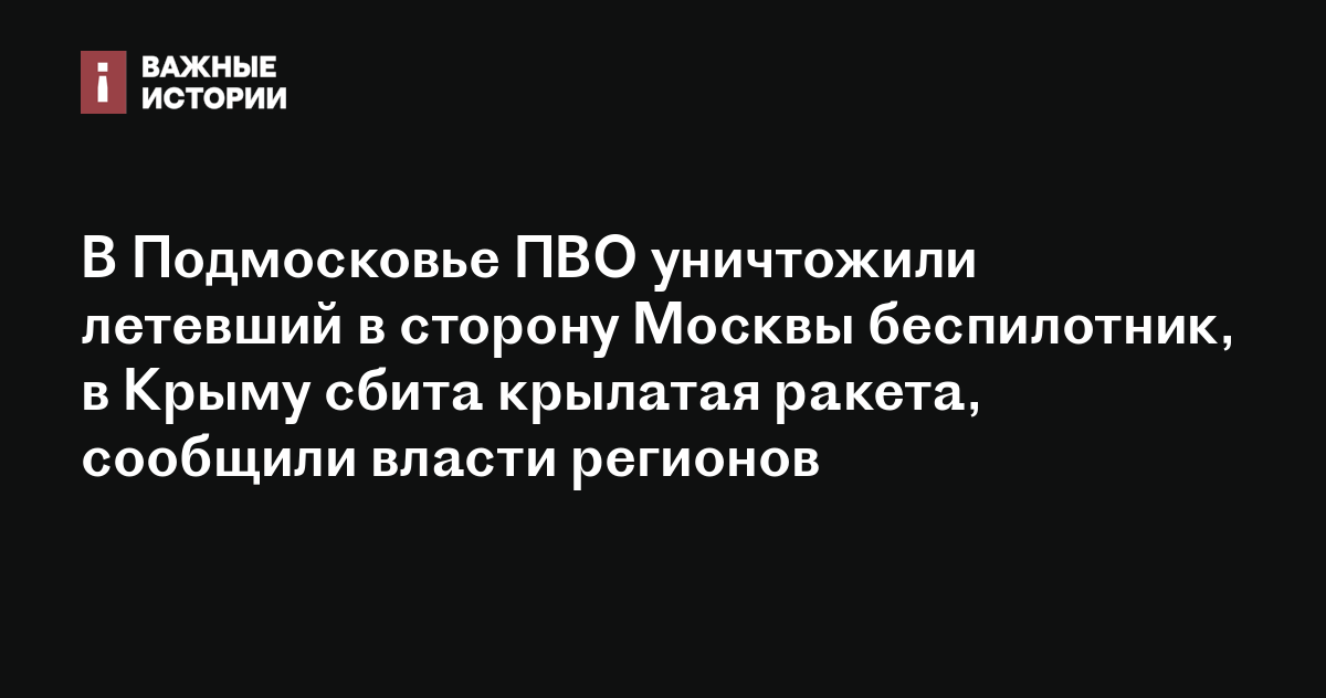 В Подмосковье ПВО уничтожили летевший в сторону Москвы беспилотник, в Крыму сбита крылатая ракета, сообщили власти регионов