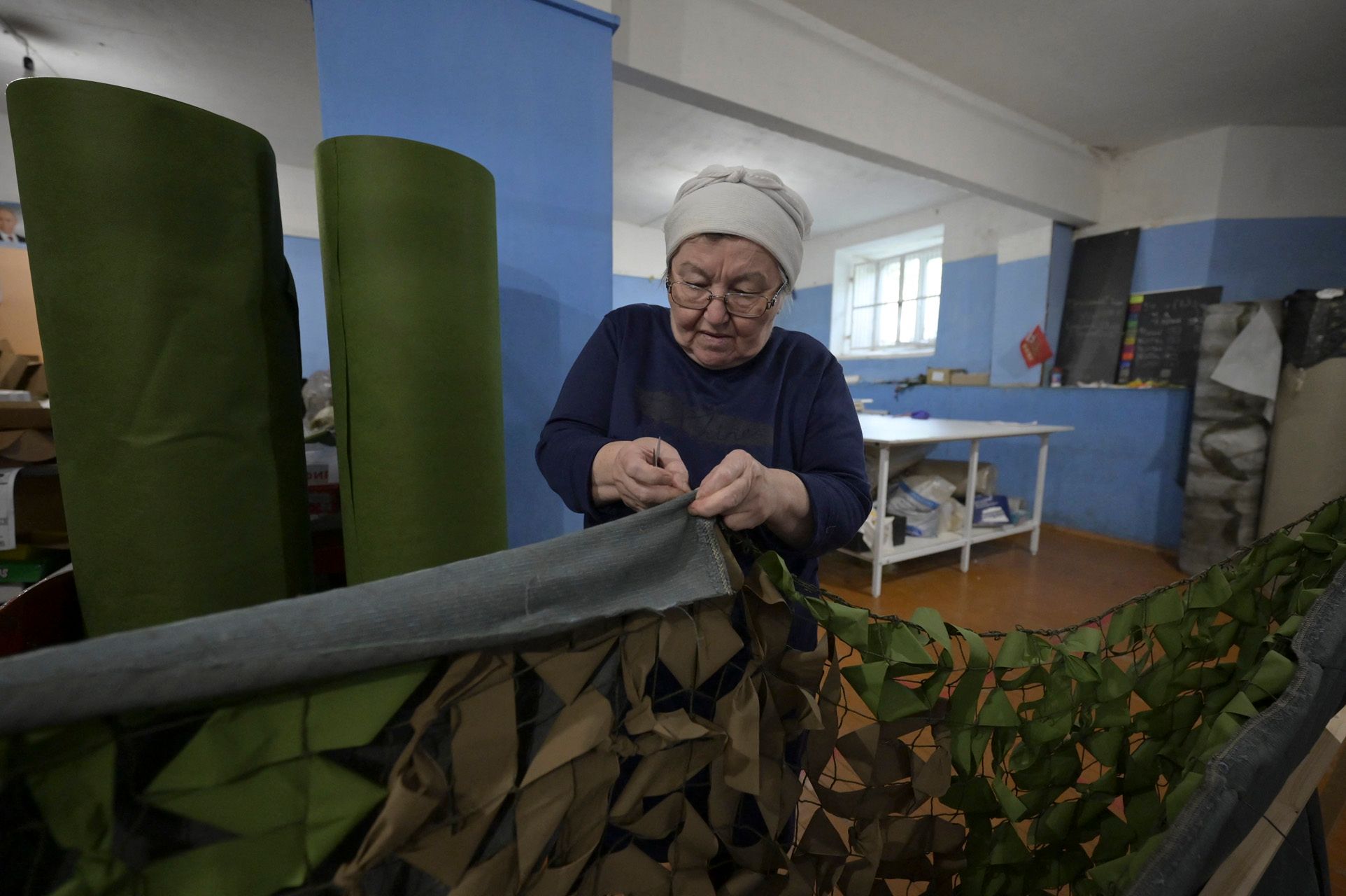 Наталия Колесникова / AFP / Scanpix / LETA Жительницы Жуковского уже почти год, с октября 2022-го, изготавливают вещи для российских военных, участвующих в полномасштабном вторжении в Украину. На фото одна из них плетет маскировочную сеть. Также волонтеры шьют спецодежду и другие вещи для солдат