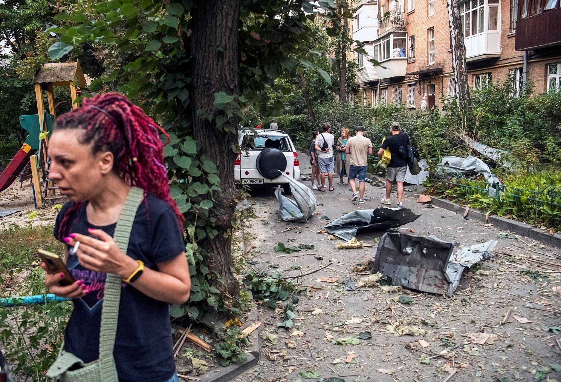 Vladyslav Sodel / Reuters / Scanpix / LETA Дым в небе над Киевом после российского удара дронами и ракетами в ночь на 30 августа. «Такой мощной атаки Киев не испытывал с весны», — заявили в городской военной администрацииVadym Sarakhan / EPA / Scanpix / LETA Пожарные разбираются с последствиями российских ракетных ударов по Киеву. В ночь на 30 августа погибли два человека, один получил ранения, сообщил глава Киевской городской военной администрации Сергей ПопкоRoman Pilipey / AFP / Scanpix / LETA Обломки российской ракеты, сбитой во время обстрела КиеваVladyslav Musiienko / Reuters / Scanpix / LETA Жители Киева возле своего дома, поврежденного во время российского ракетного удараRoman Pilipey / AFP / Scanpix / LETA Во время российского обстрела Киева были повреждены многие дома и магазины. На следующий день жители города вышли на уборку