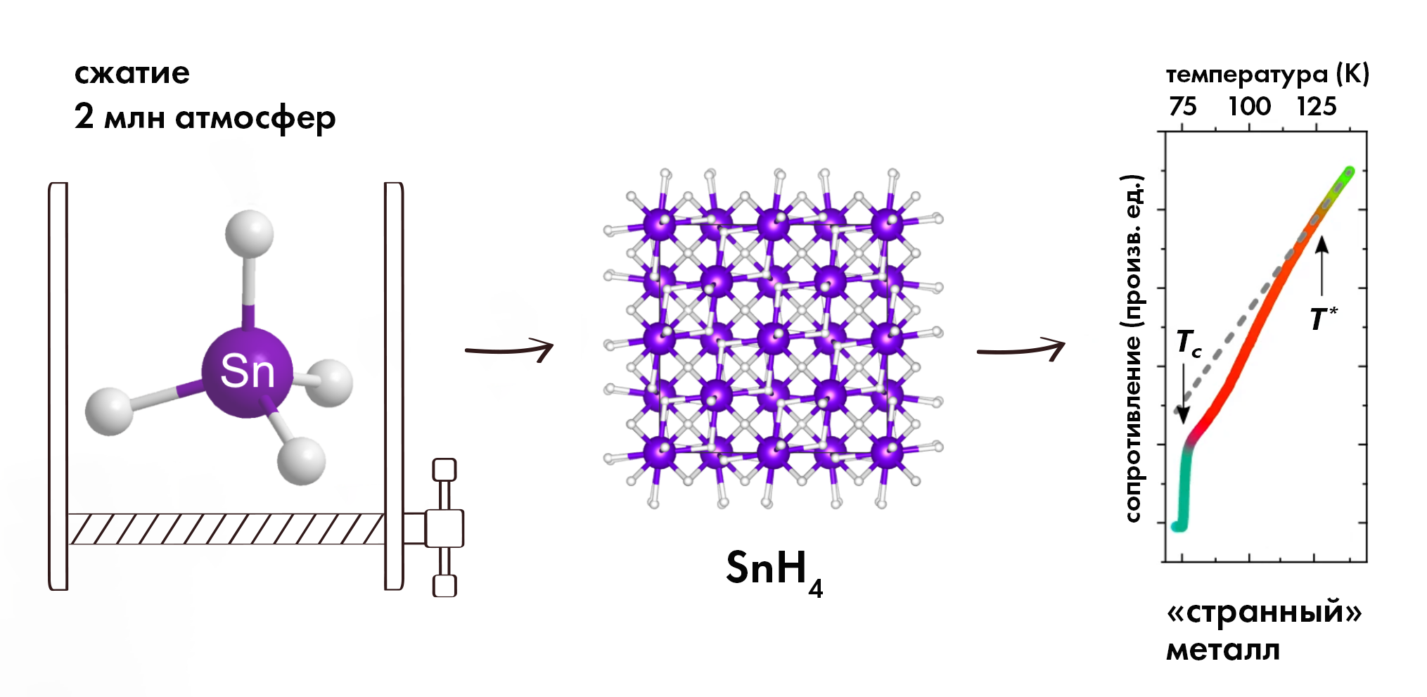 По словам исследователей, SnH4 под давлением проявляет необычные свойства: электрическое и магнитное сопротивление этого гидрида в несверхпроводящем состоянии практически линейно зависят от температуры и приложенного магнитного поля соответственно. Верхнее критическое магнитное поле также линейно зависит от температуры, отклоняясь от общепринятых моделей. Поведение тетрагидрида олова оказывается очень похожим на поведение купратных сверхпроводников, которые принято характеризовать как «странные», нефермижидкостные, металлы.