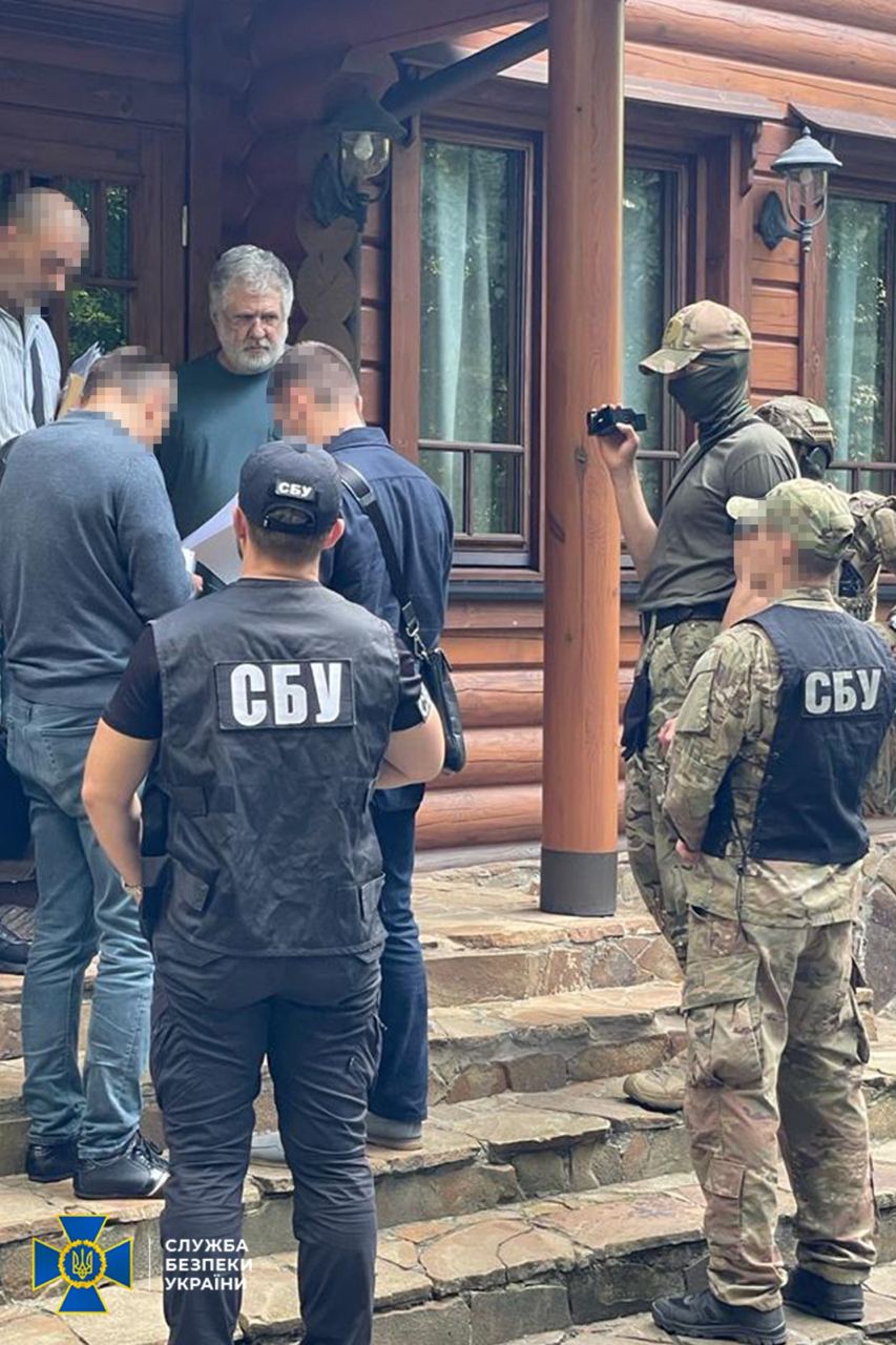 СБУ опубликовала фотографии, на которых запечатлен момент прихода сотрудников службы безопасности к украинскому бизнесмену. Информации о задержании Коломойского пока нет.
