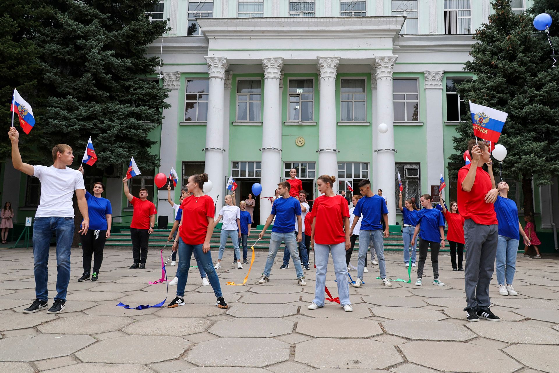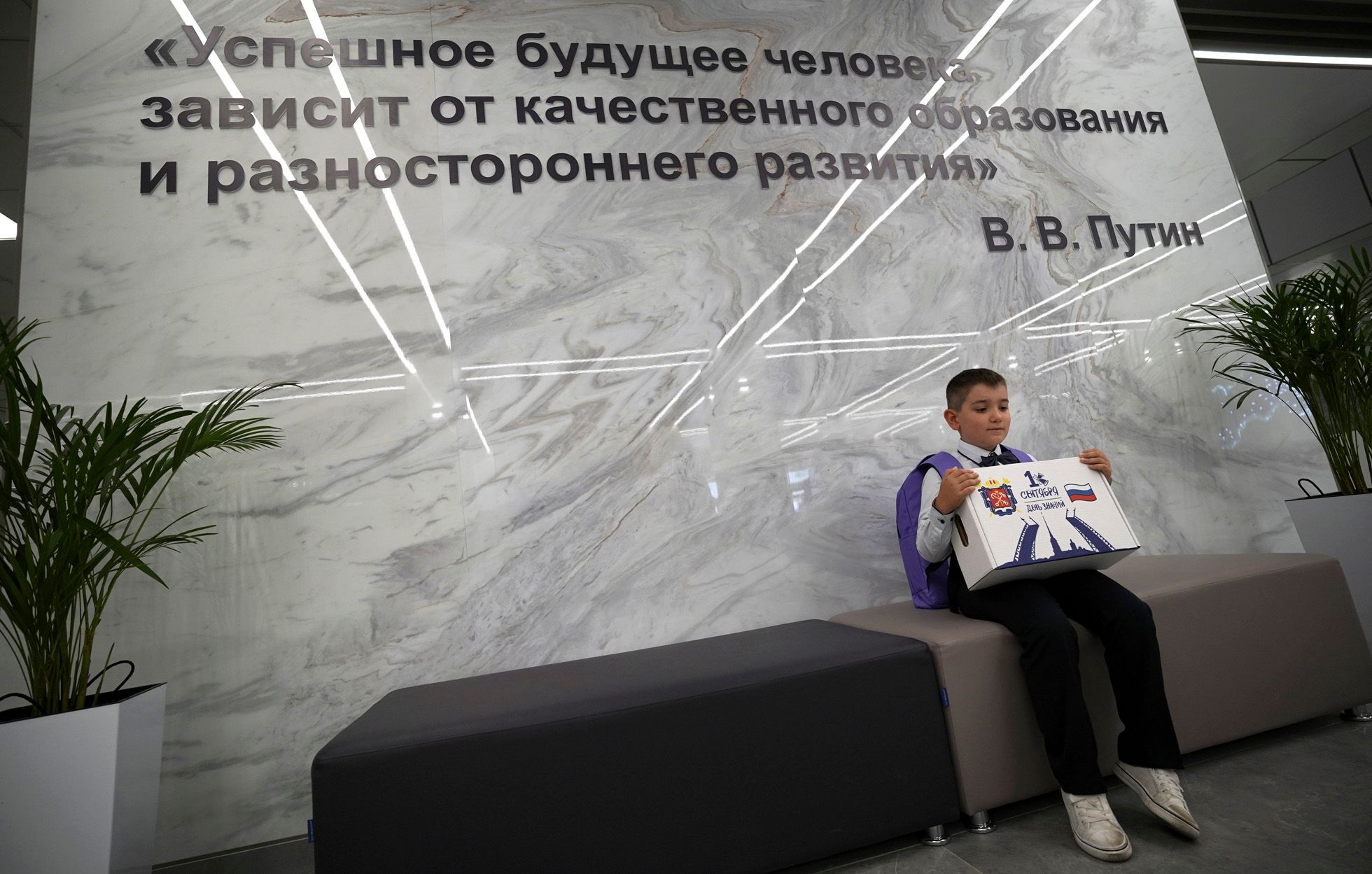 EPA / Scanpix / LETA Линейка в новой школе в Мариуполе — городе, который российская армия почти полностью разрушила после начала войны с Украиной, а затем оккупировала. В церемонии к началу учебного года поучаствовал глава аннексированной ДНР Денис ПушилинАлександр Сухов / Спутник / imago images / Scanpix / LETA Первоклассник, который пошел в школу в оккупированном МариуполеТаисия Воронцова / Спутник / imago images / Scanpix / LETA Ученицы гимназии № 6 в аннексированном Донецке перед началом линейкиСтуденты Мелитопольского государственного университета, который находится в оккупированной части Запорожской области