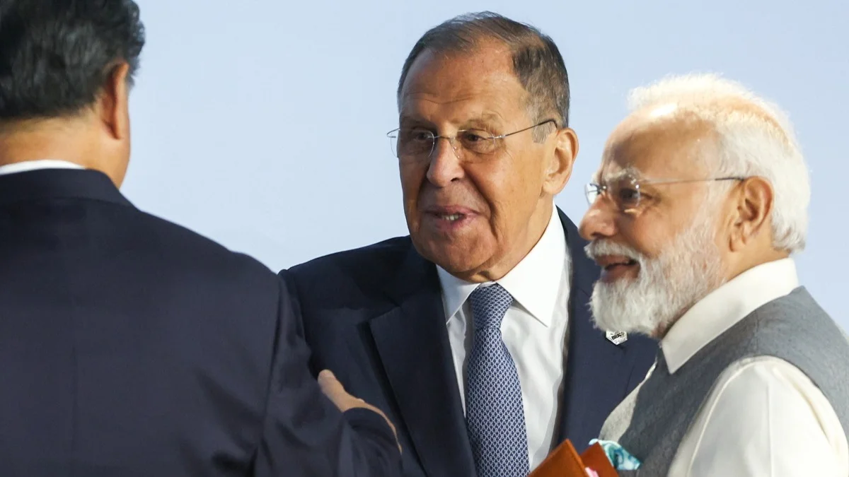 Председатель КНР Си Цзиньпин, министр иностранных дел РФ Сергей Лавров и премьер-министр Индии Нарендра Моди на саммите БРИКС. Фото: Сергей Бобылев / ТАСС