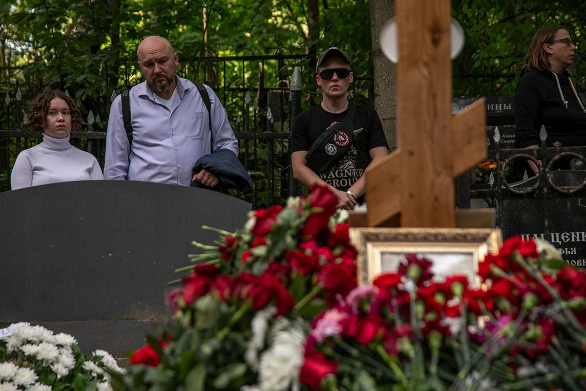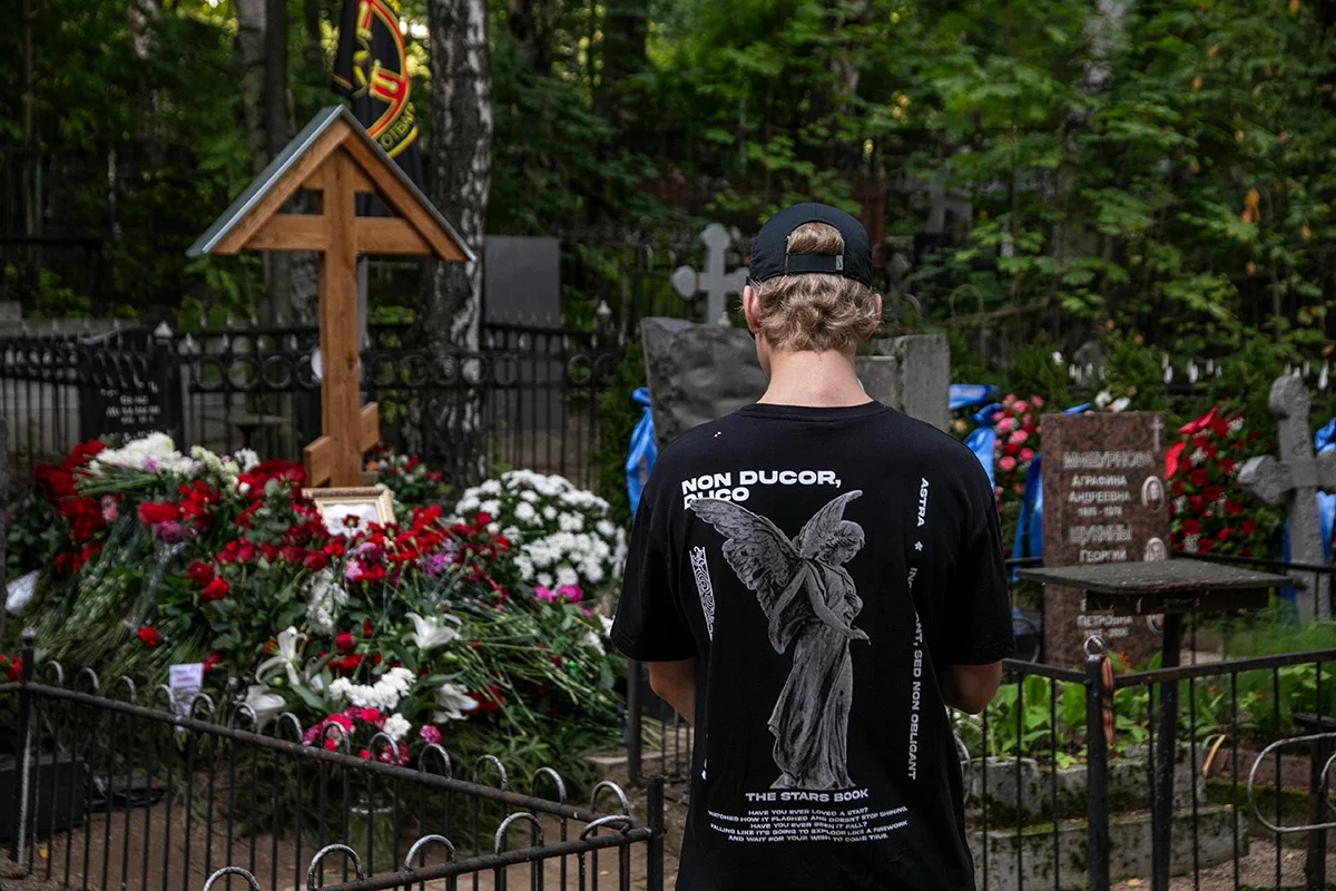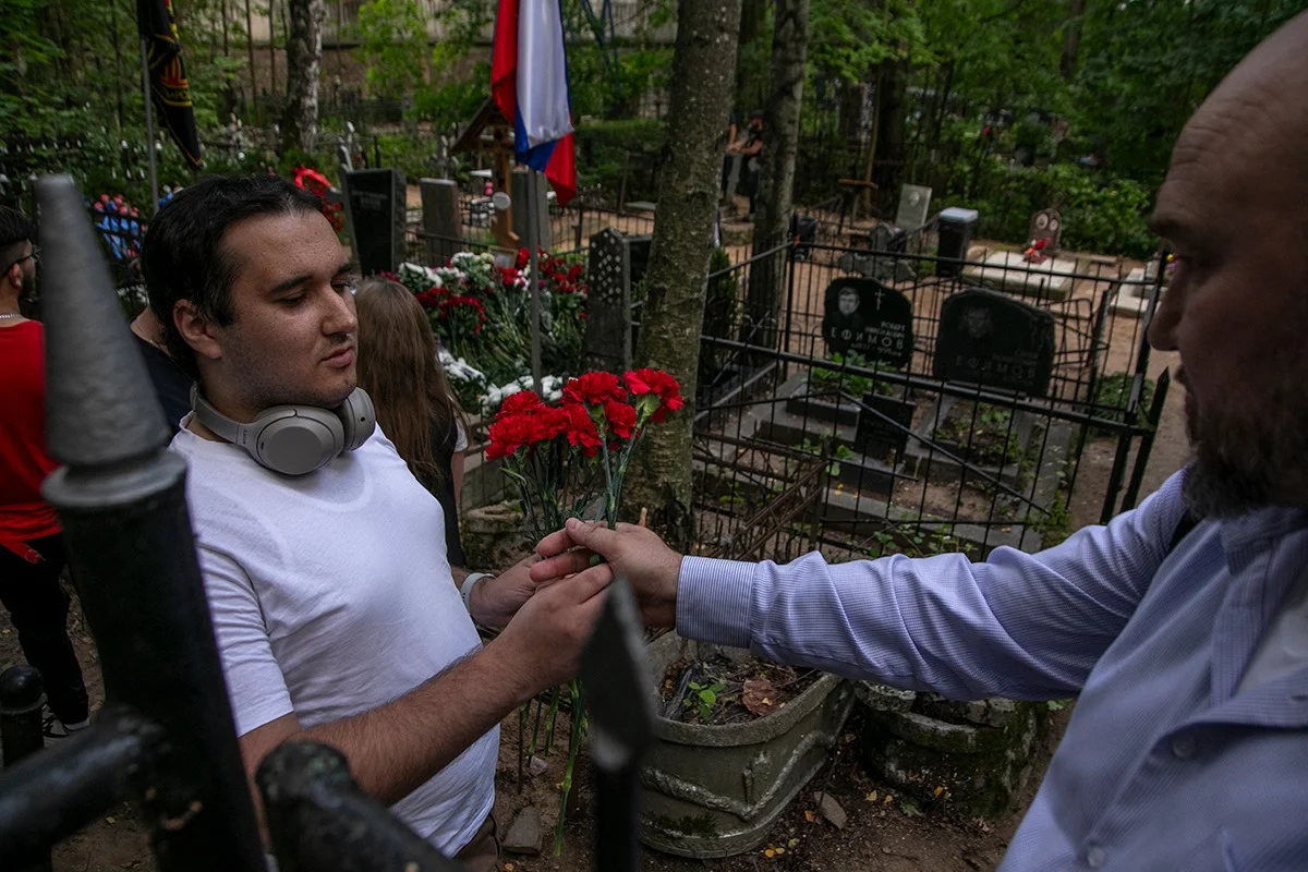 Желающие попрощаться с Пригожиным приходят на кладбище каждый день — не меньше ста человек. Но кладбищенские работники говорят, что «это много для тех, кто не видел, как провожали Виктора Цоя, Анатолия Собчака, да многих людей достойных».