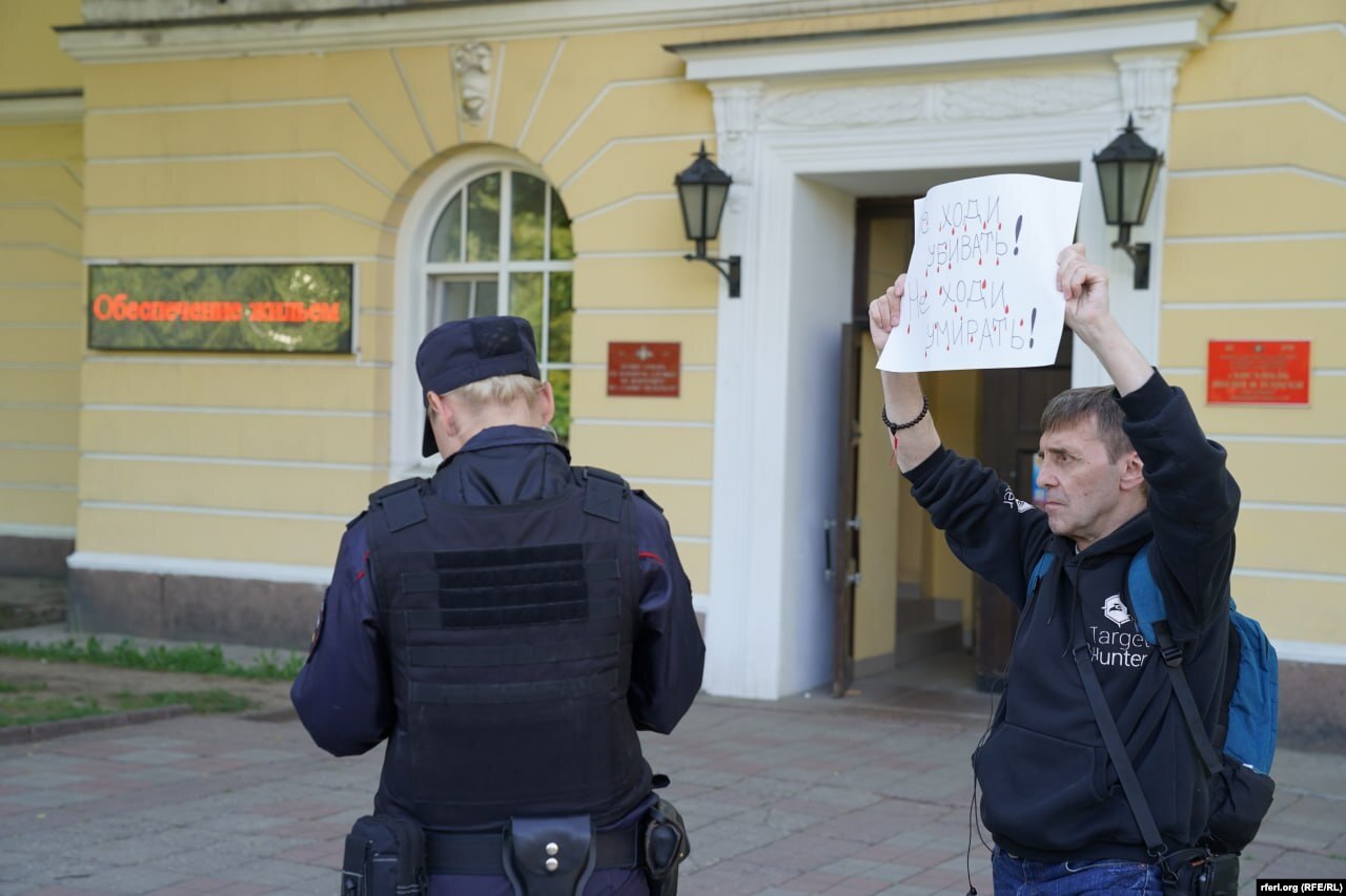 Иоффе говорит, что пикеты для него – это "попытка жить в мире самим с собой". Он надеется, что может повлиять на решение человека, который еще сомневается, заключать ему контракт на военную службу или нет.